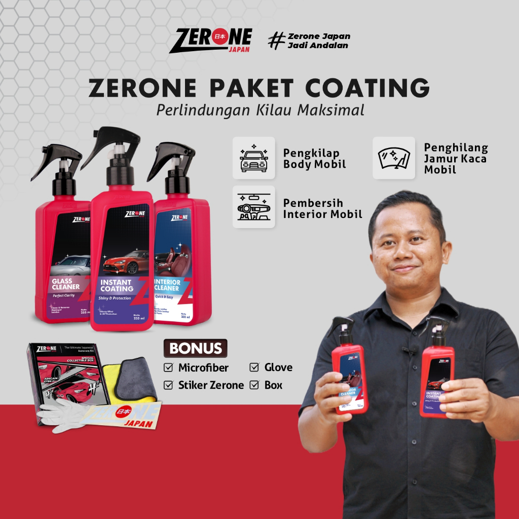 Zerone Paket Coating Pembersih Interior Pengkilap Body Pembersih Jamur Kaca Mobil