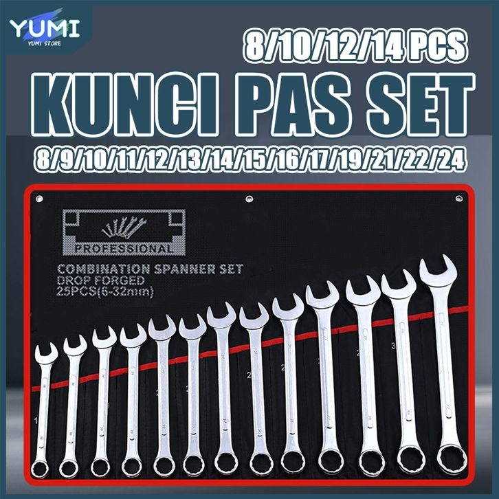 Kunci Ring Pas set/ 8 /10/12 /14 Pcs 8-24mm Kunci Pas/Kunci Pas Serbaguna Set/Lengkap Perkakas Reparasi