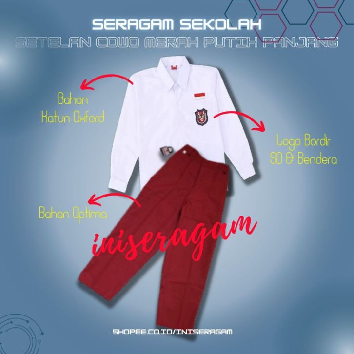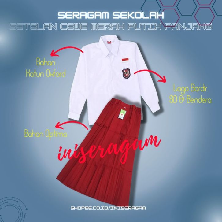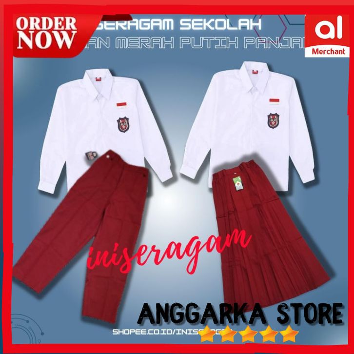 IN SERAGAM Setelan Seragam Sekolah Merah Putih SD Kelas 1 2 3 4 5 6 Baju Atasan Tangan Lengan Panjang Logo Bordir
