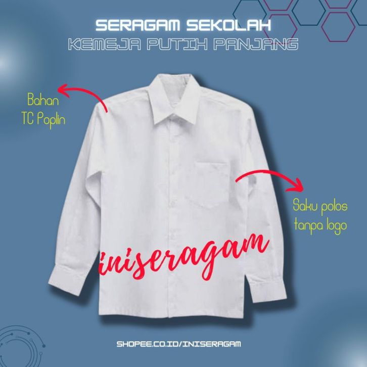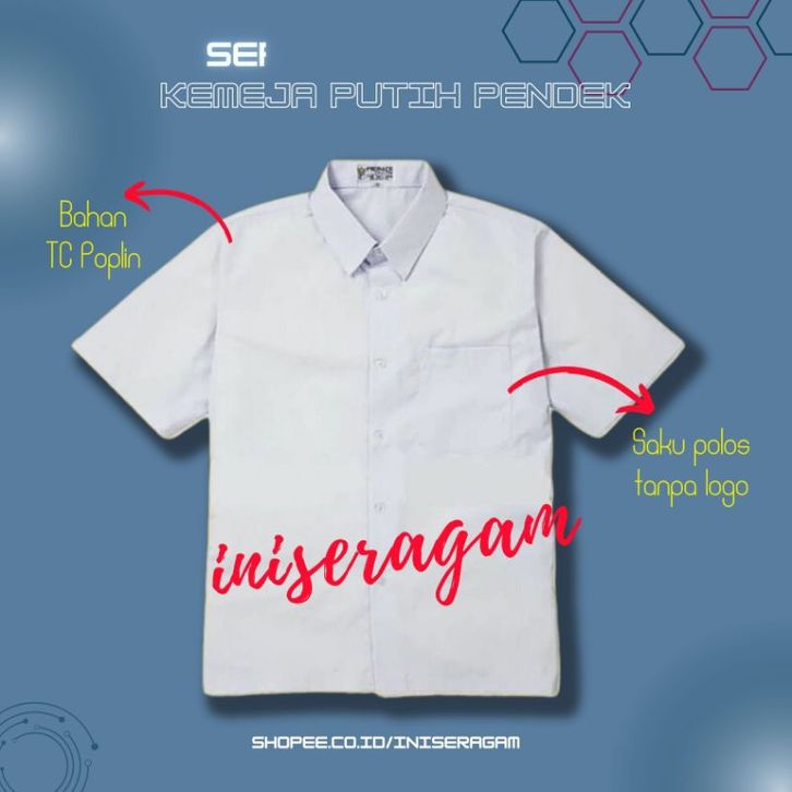 INI SERAGAM Baju Seragam Sekolah Atasan Kemeja Hem Polos Warna Putih TK SD MI MTS SMP SMA MTS SMK Kerja Kantor sampai