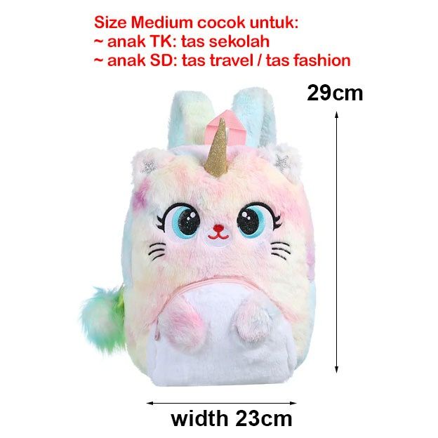 Tas Ransel Bulu Anak Perempuan Unicorn cat pom pom lucu import tas bulu kucing Free Ongkir