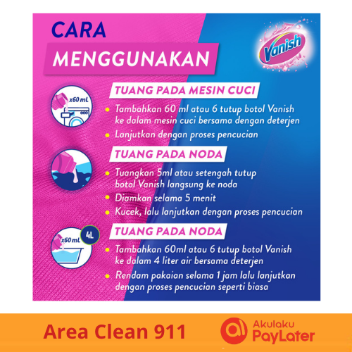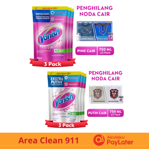 [ 3 Pcs ] Vanish Penghilang Noda Pakaian Pink/Putih 750ml x 3