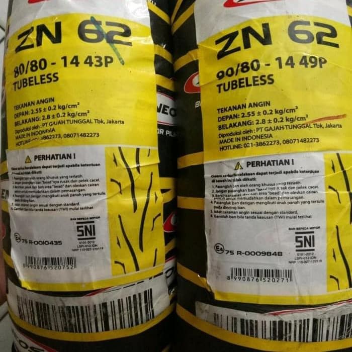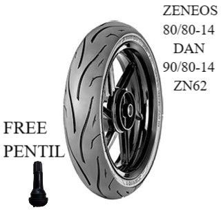 Paket Ban zeneos tubeless 80/80-14 dan 90/80-14 zn62 zn 62 FREE PENTIL (2 BAN) PRODUKSI TAHUN 2024