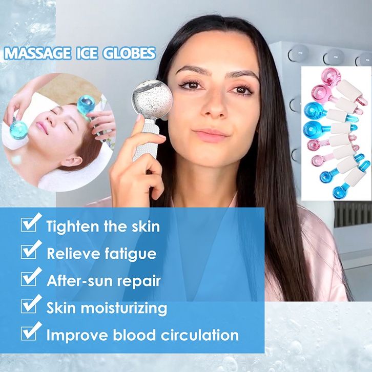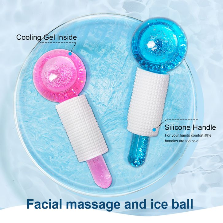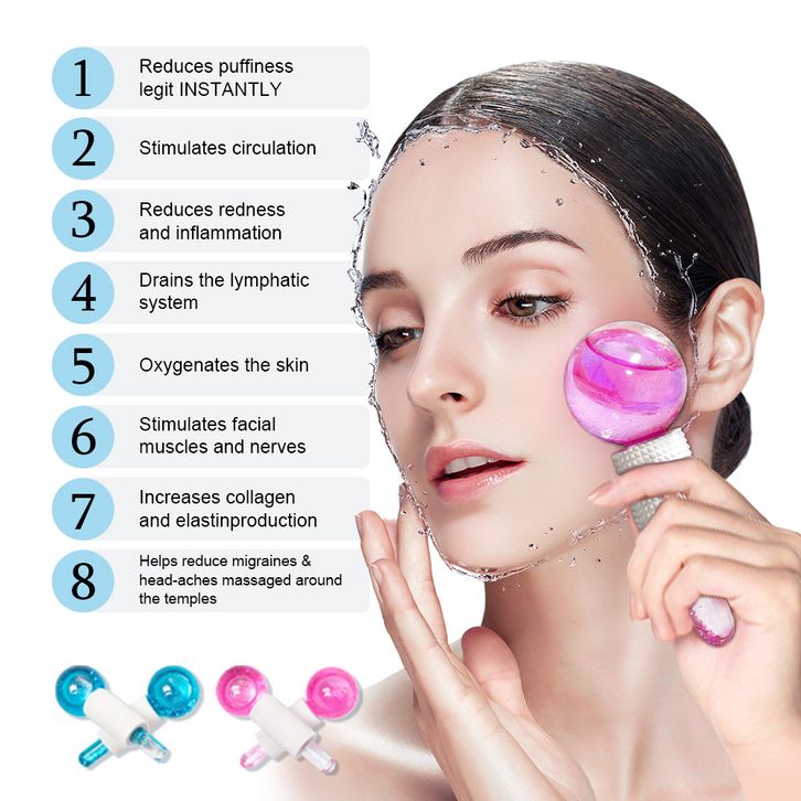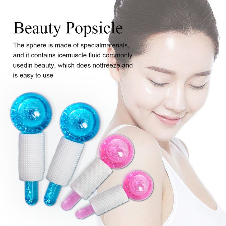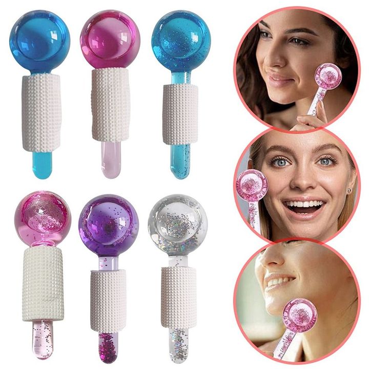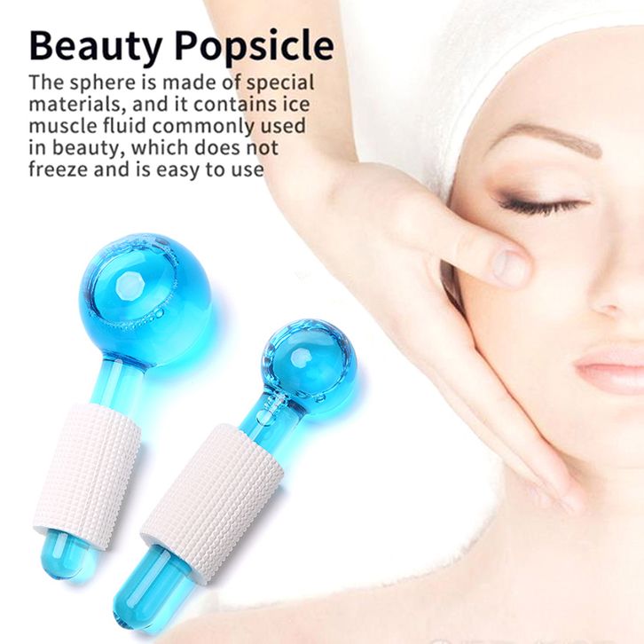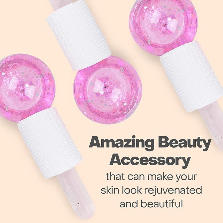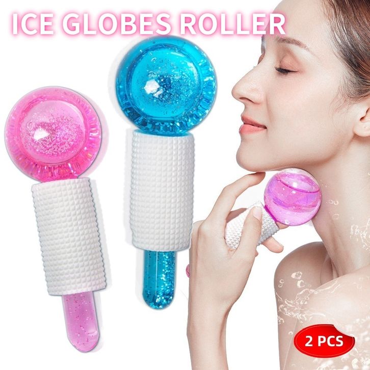Globes Roller - Pink/Blue 2pcs - Beauty Crystal Ball Glitter/Ice Globes Facial Roller Glitter/ Alat Pencerah Wajah