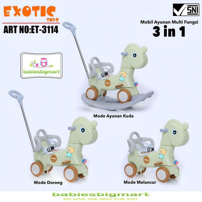 Mainan Exotic ET 3114 Kuda Kudaan Anak Ada Musik Dorongan Sabuk Pengaman ET3114 Ride On Mode