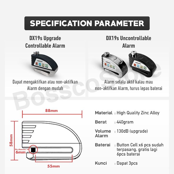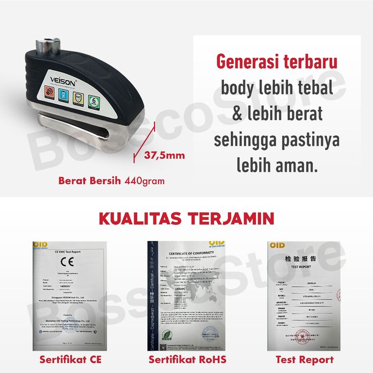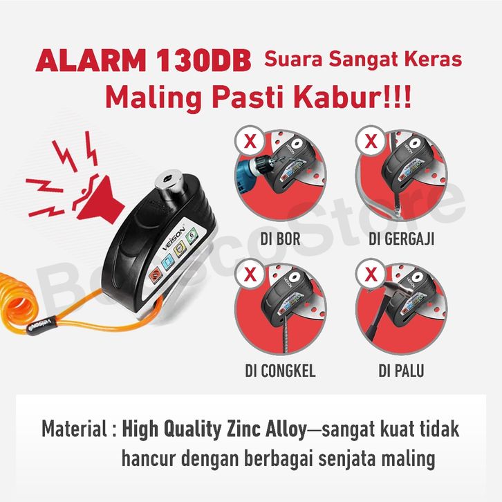VEISON DX19 Gembok Cakram Alarm Original Kunci Rem Sepeda Motor Discbrake Lock gembok cakram dengan alarm gembok motor