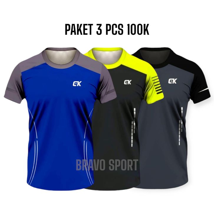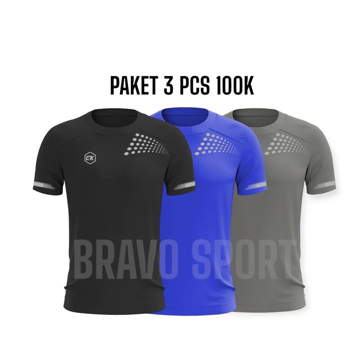 Kaos Olahraga Dryfit Pria Paket 3 Pcs Cocok Buat Gym Joging Futsal Bahan Premium serap Keringat