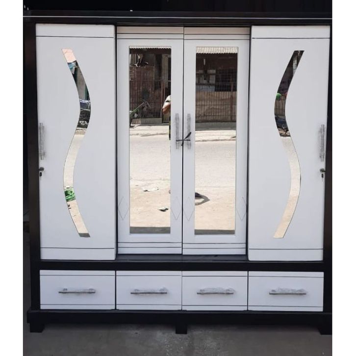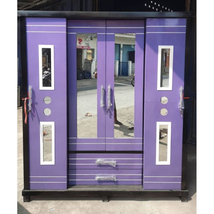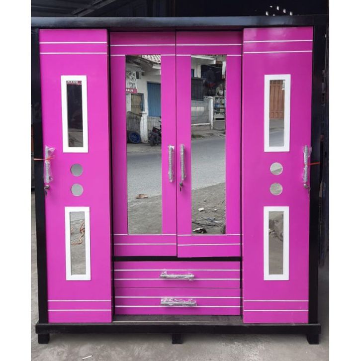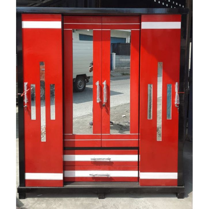 Lemari Baju 4 Pintu Jumbo / Lemari Baju Sliding / Lemari Pakaian Pintu Motif / Lemari Baju Bahan Kayu Bloktik
