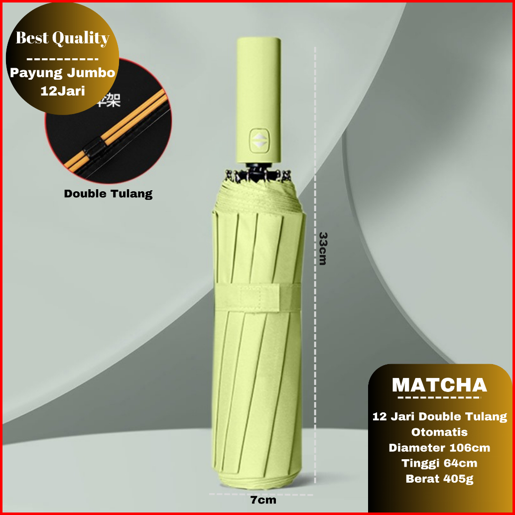 Payung Jumbo Lipat Otomatis 12 Tulang 12 Jari Jari Anti Uv