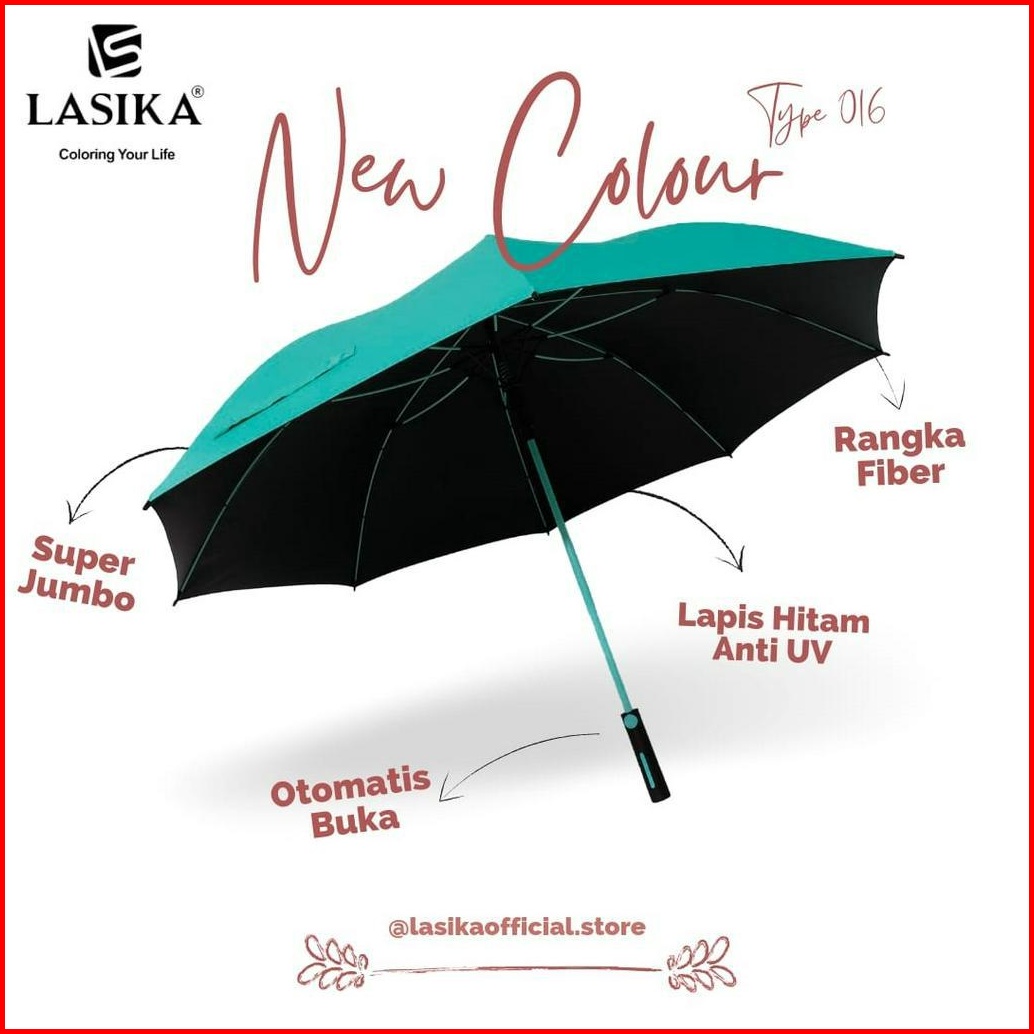 Payung Rangka Fiber Anti Uv Lapis Hitam Terbaru Otomatis Buka Type 016 Lasika