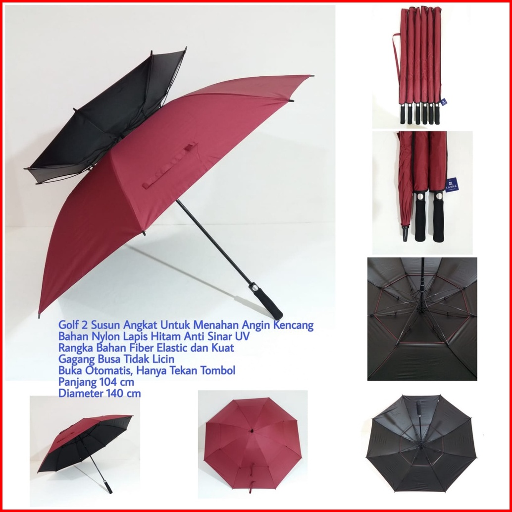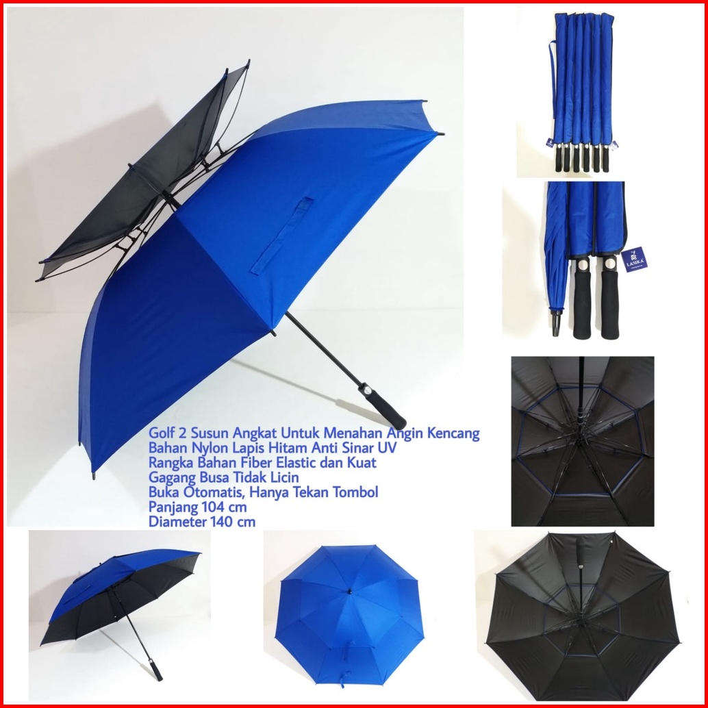 Lasika Payung Golf Automatis 2 Susun Rangka Fiber Warna Bahan Nylon Kualitas Premium Kode 007