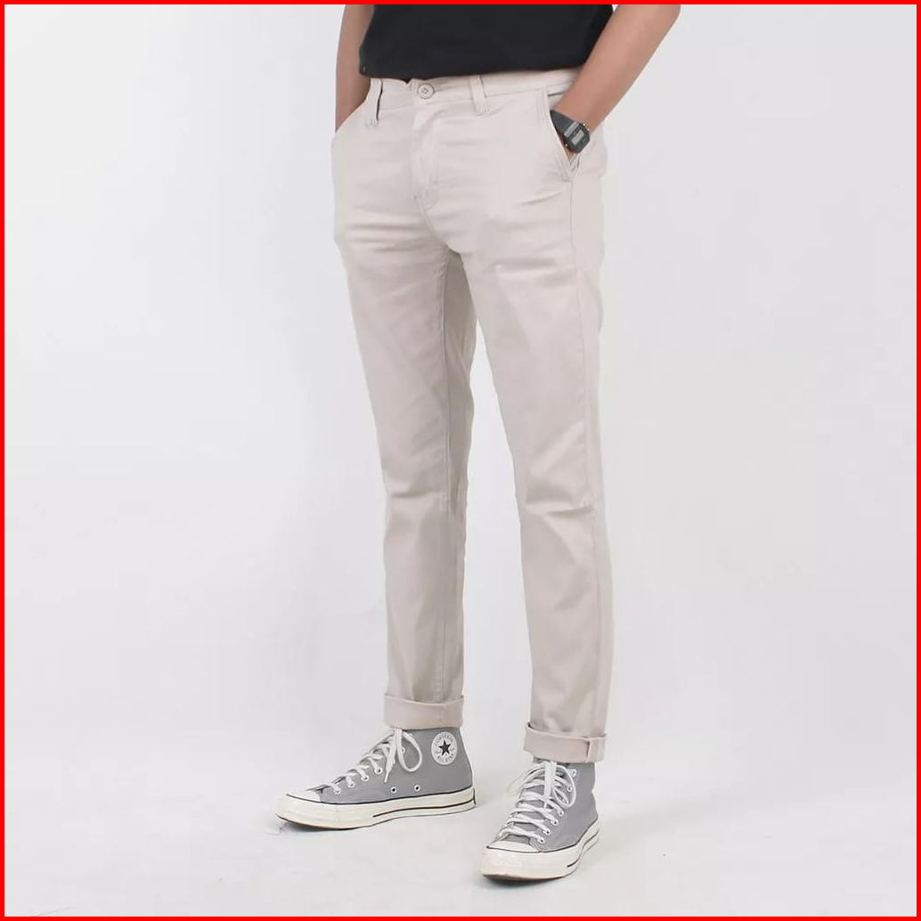 Celana Chino Panjang Pria Slimfit Kerjaharian Santai Casual Formal Hitam Abu Cream Mocca Size 27-38