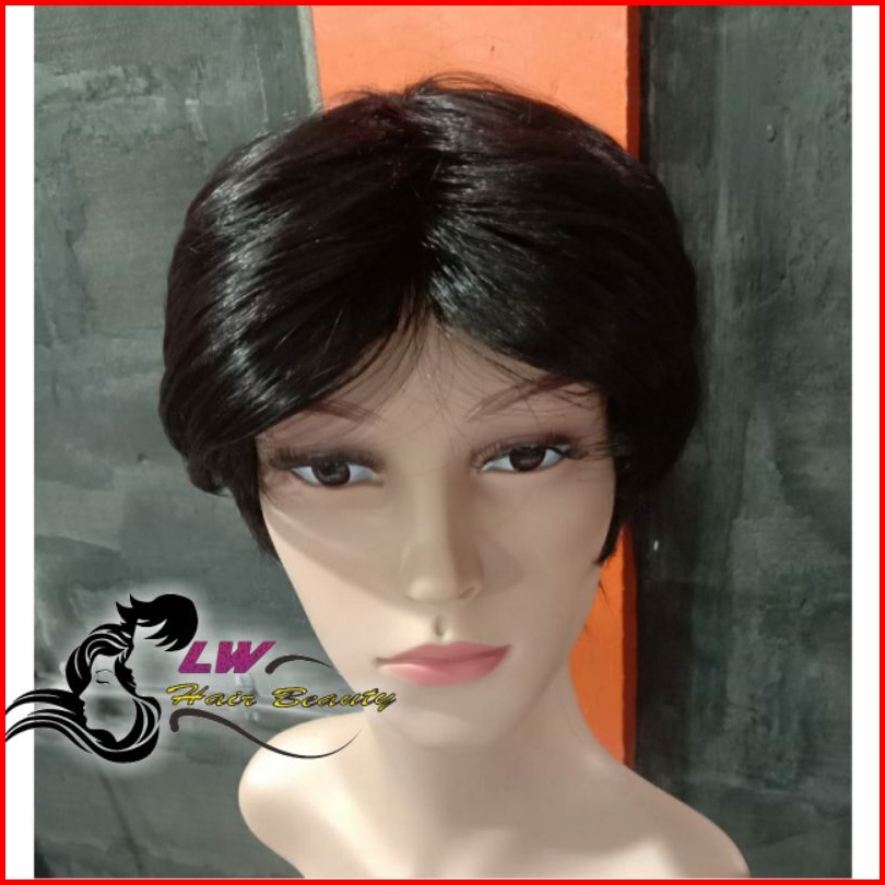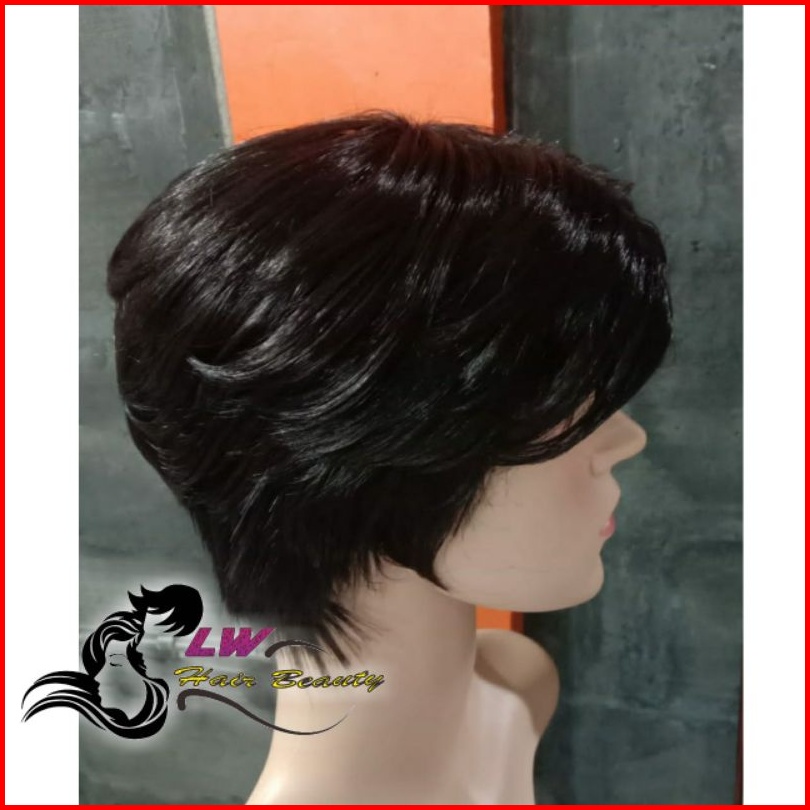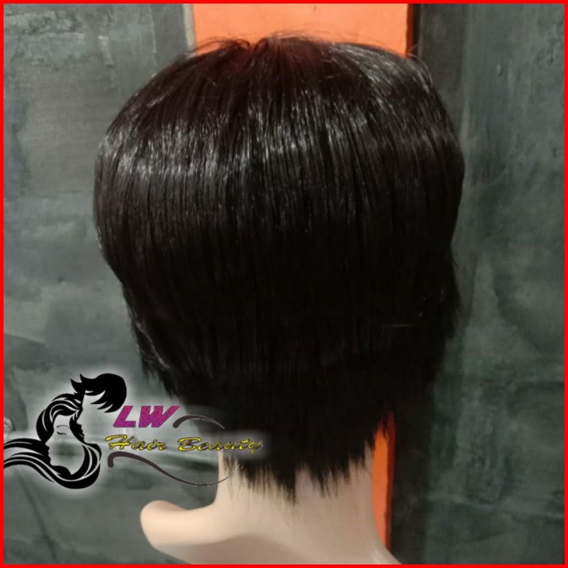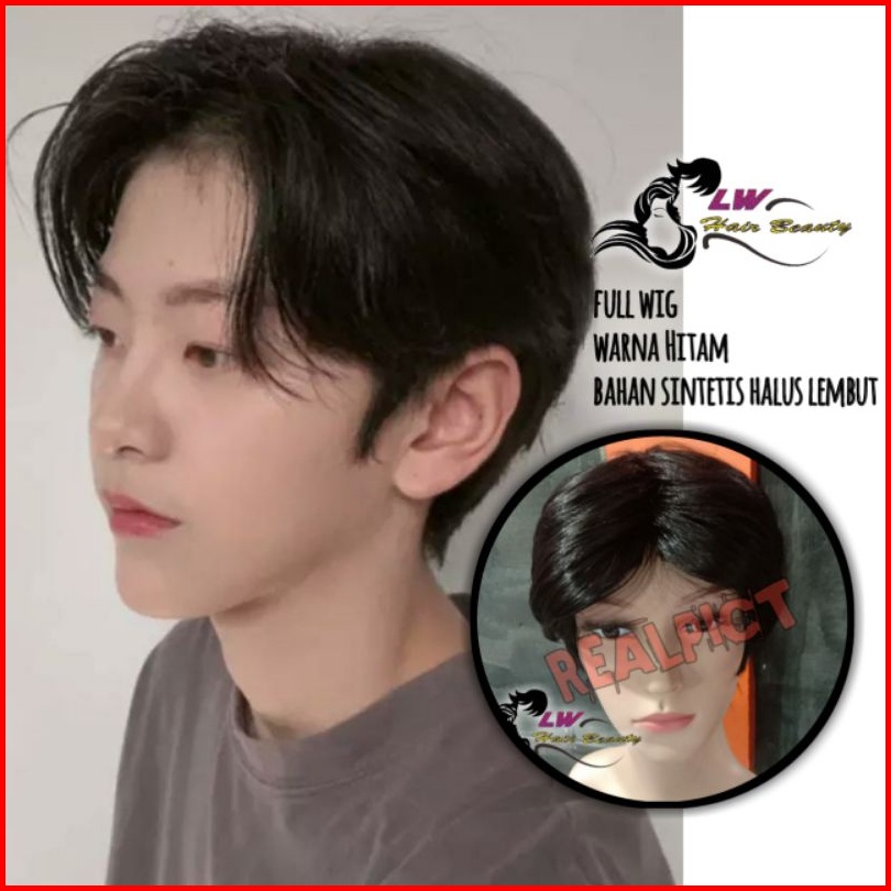 Wig Pria Pendek Belah Tengah Hitam Gaya Opa Korea