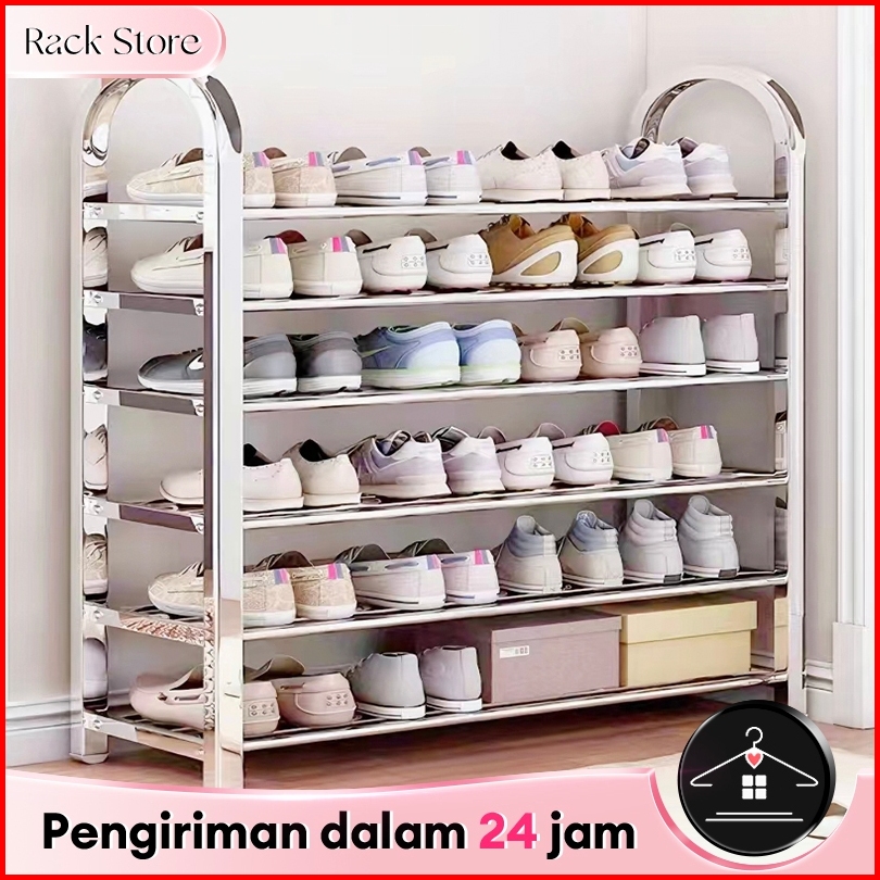 Rak Sepatu Tingkat Stainless Steel Kokoh Tempat Sepatu Sendal Besi Rak Sepatu 6 Susun Multifungsi