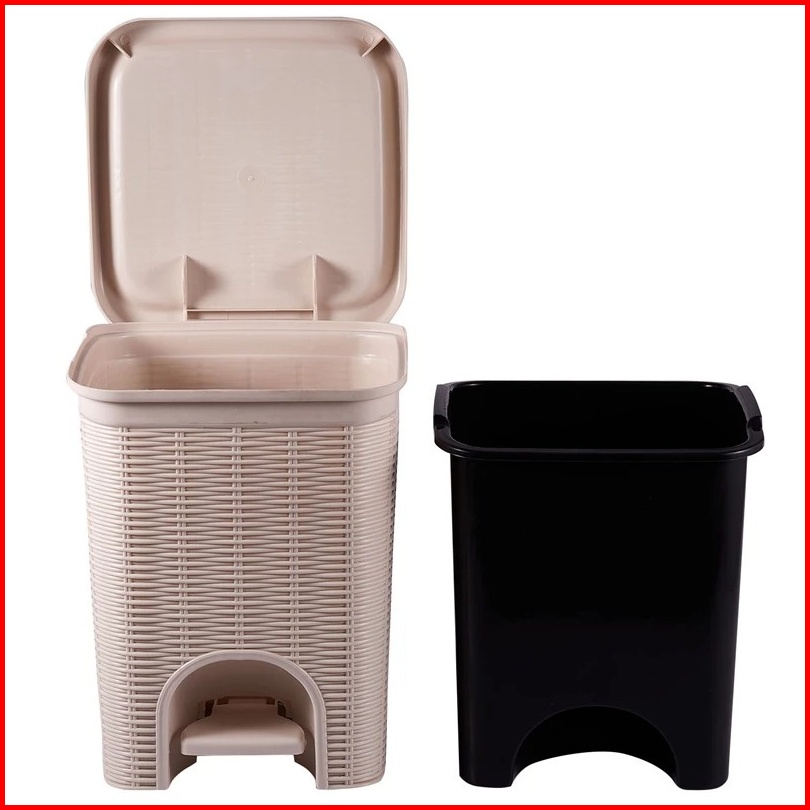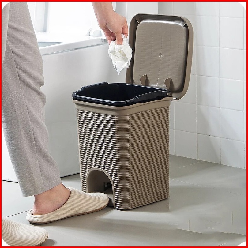 Tempat Sampah Injak Besar Aesthetic Buka Otomatis Motif Rotan Anyam Trash Bin Dapur Ruang Tamu