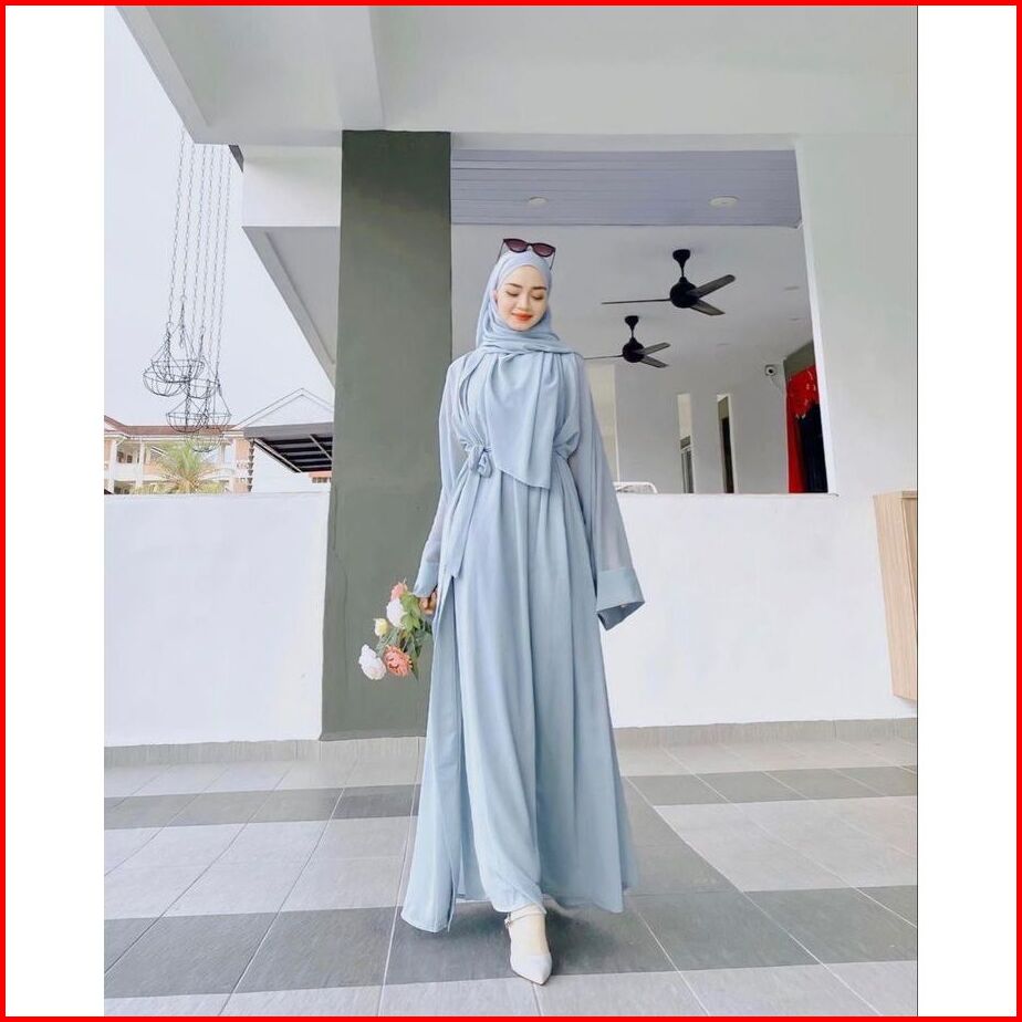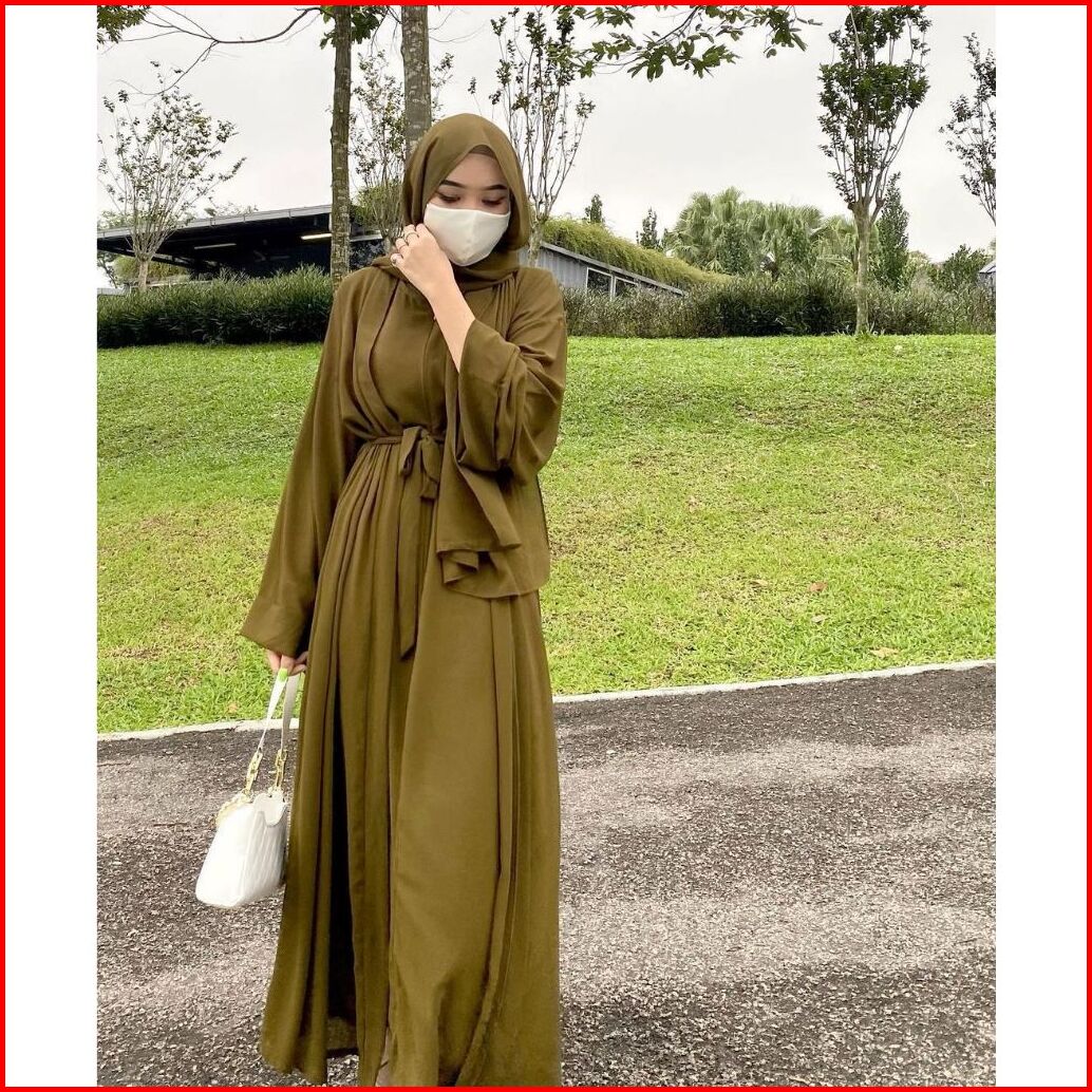 Abaya Turkey Set Outer Plus Pashmina Lebaran Size Jumbo Viral Terbaru 2024 Ellegant Kekinian