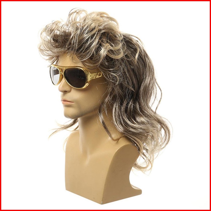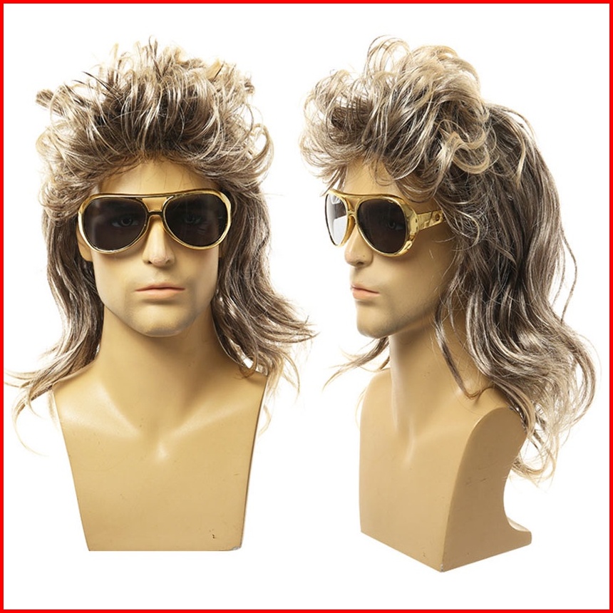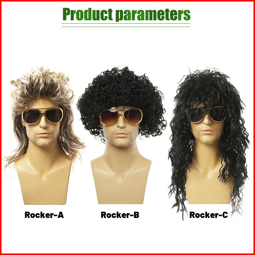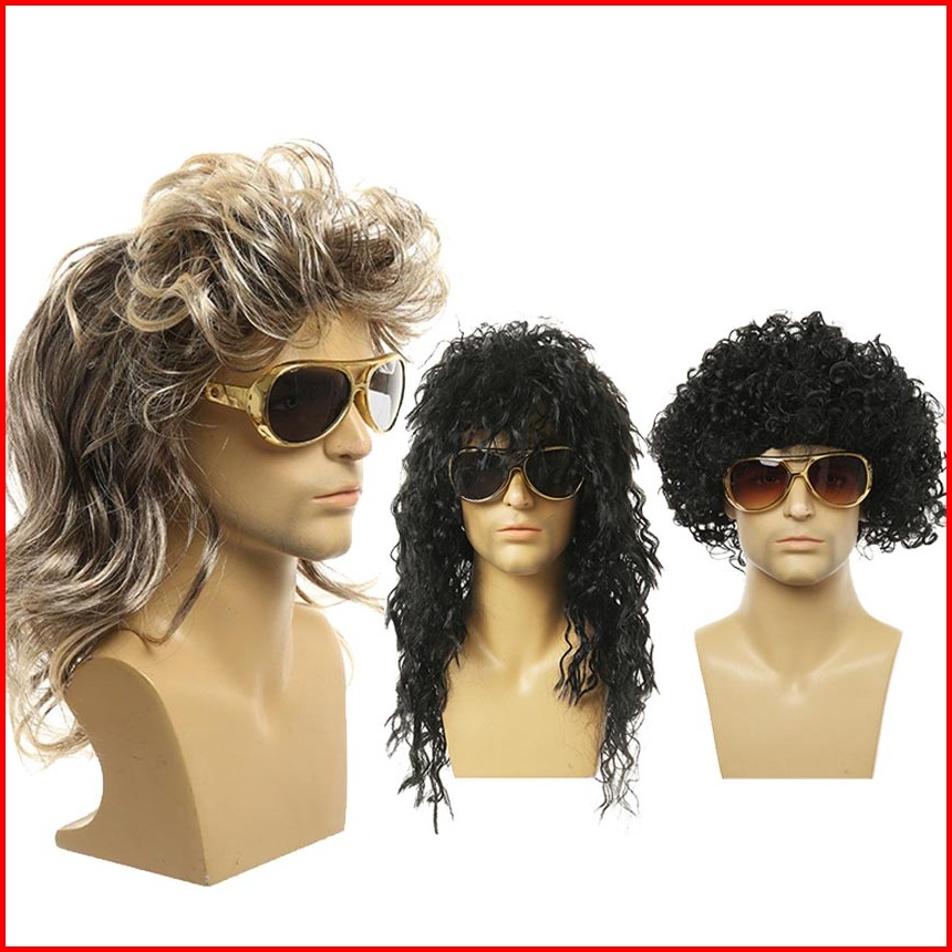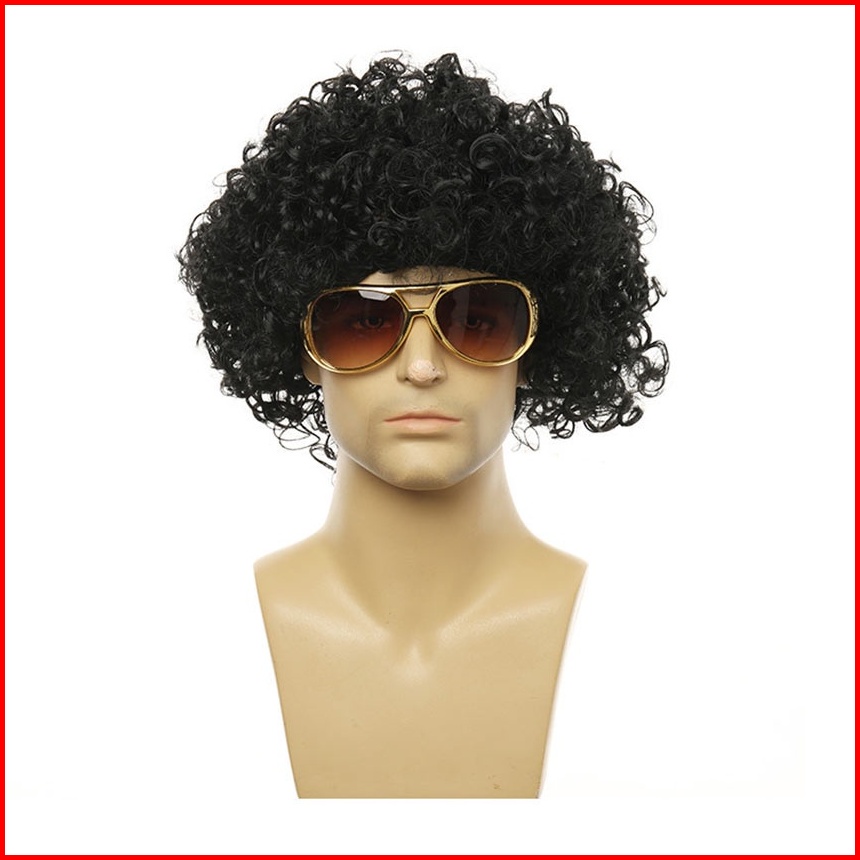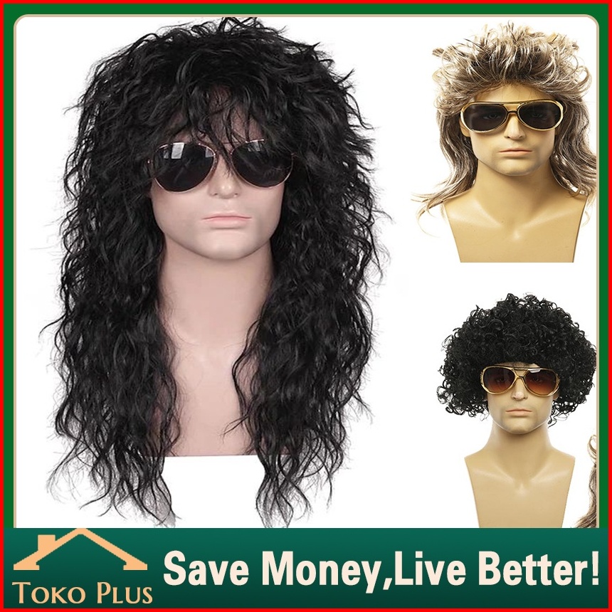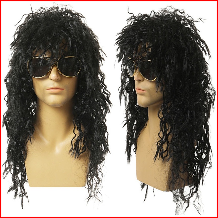 Wig Kribo Hitam Wig Punk Rocker Curly Long Rambut Halloween Kostum Rocker Wig Pria Wig Brokoli