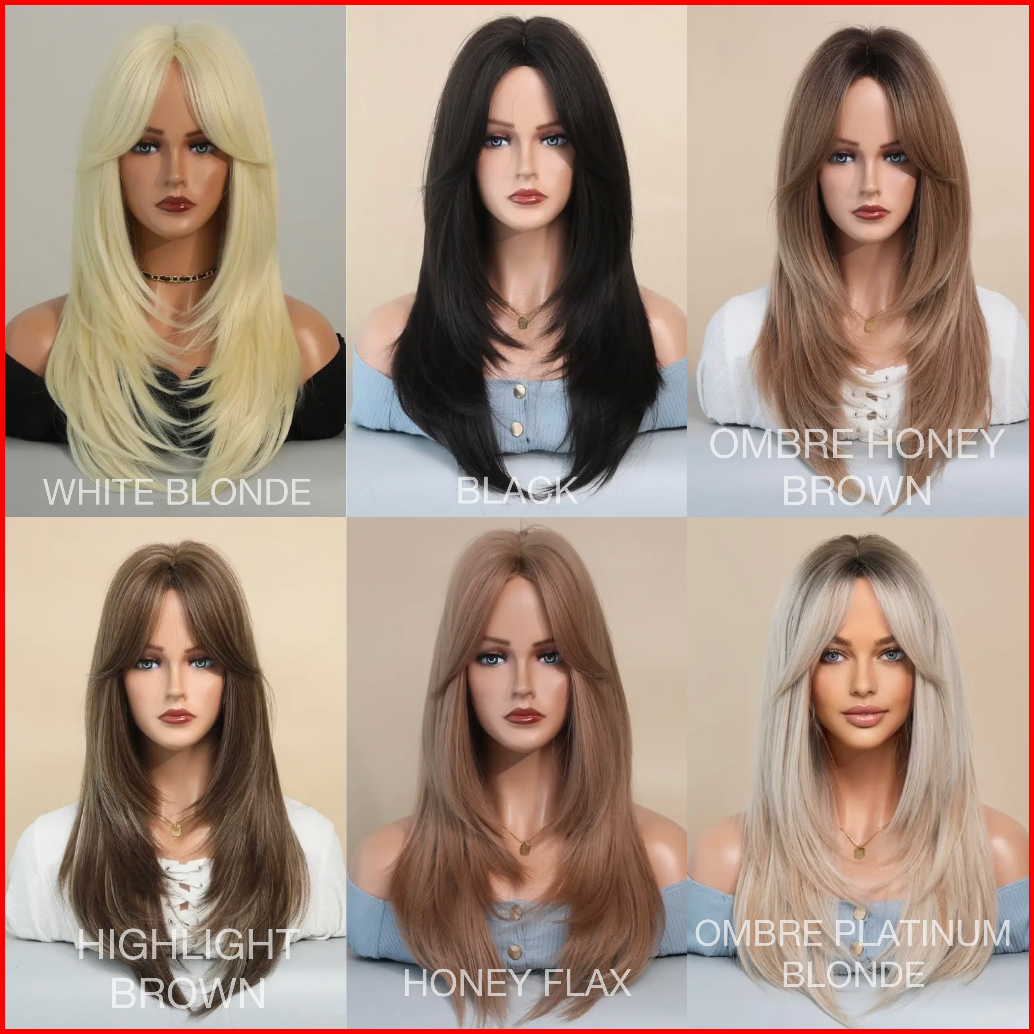 Aegyoshoppe - Mw9039 Butterfly Cut Full Wig Korean Layer Blow Curtain Bangs 60-65 Cm