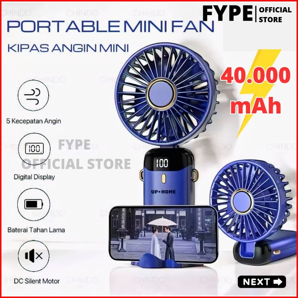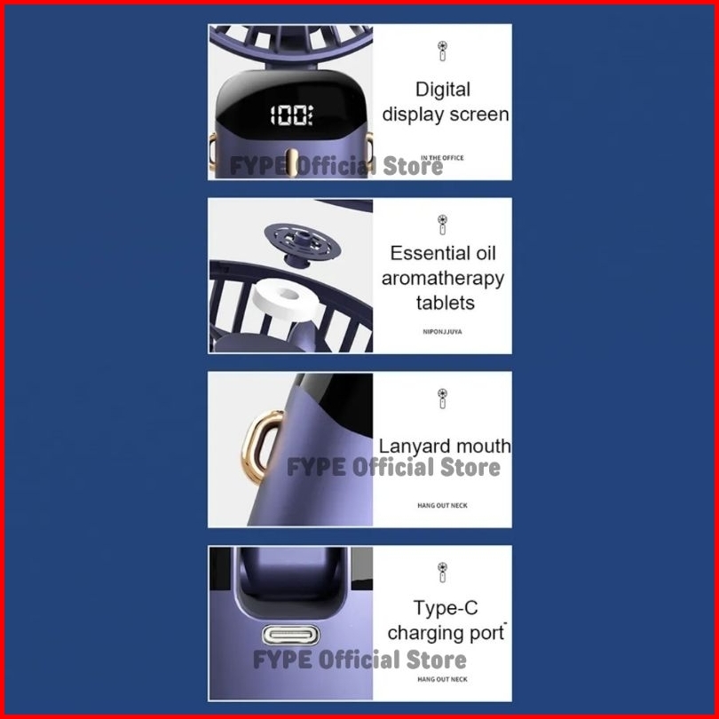 Fype Kipas Angin Mini Portable Usb 40000 Mah Kipas Lipat Leher 5-speed Wind Led Display Dengan Aromaterapi