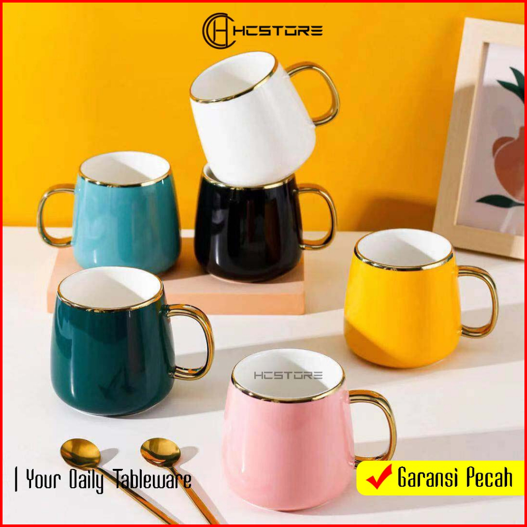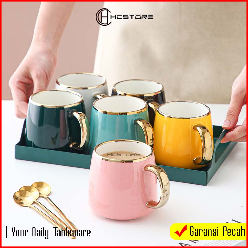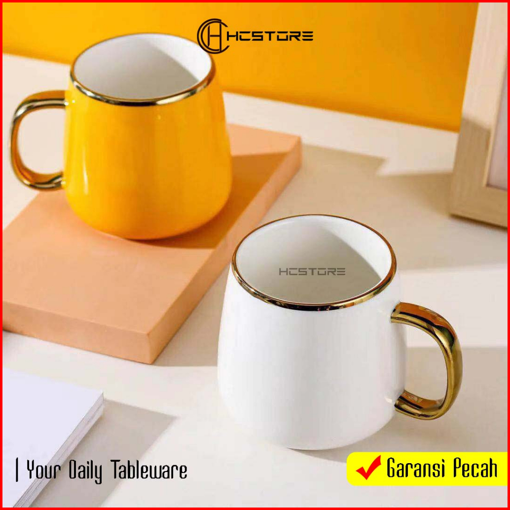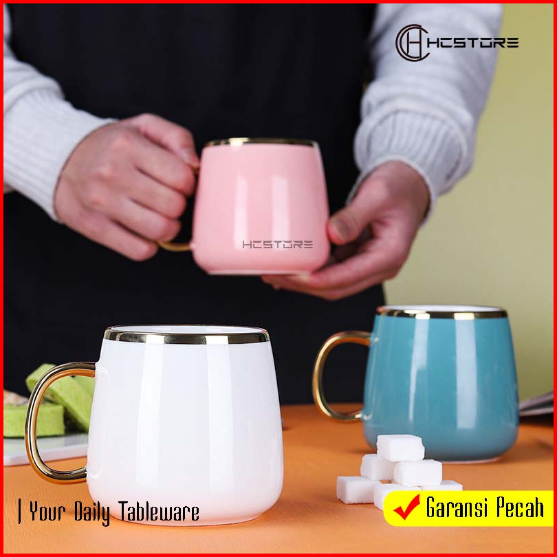 Gelas Kopi Teh Keramik List Sultan Mewah Tahan Panas Microwavesafe