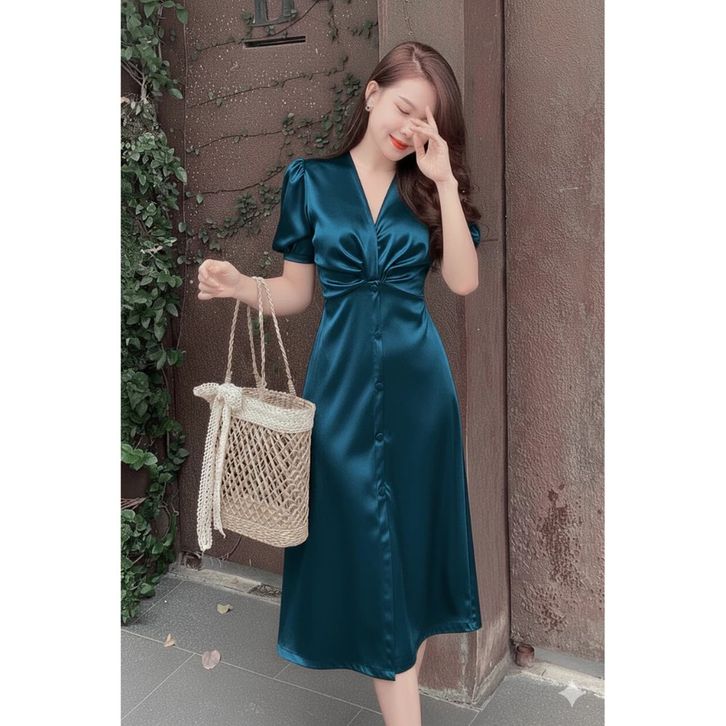 Dress Midi Satin Velvet Mengkilap Elegan Baju Dress Wanita Terbaru Korea Dress Pesta Dress Natal Gaun Kekinian Mewah