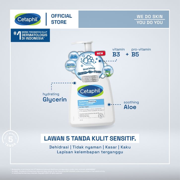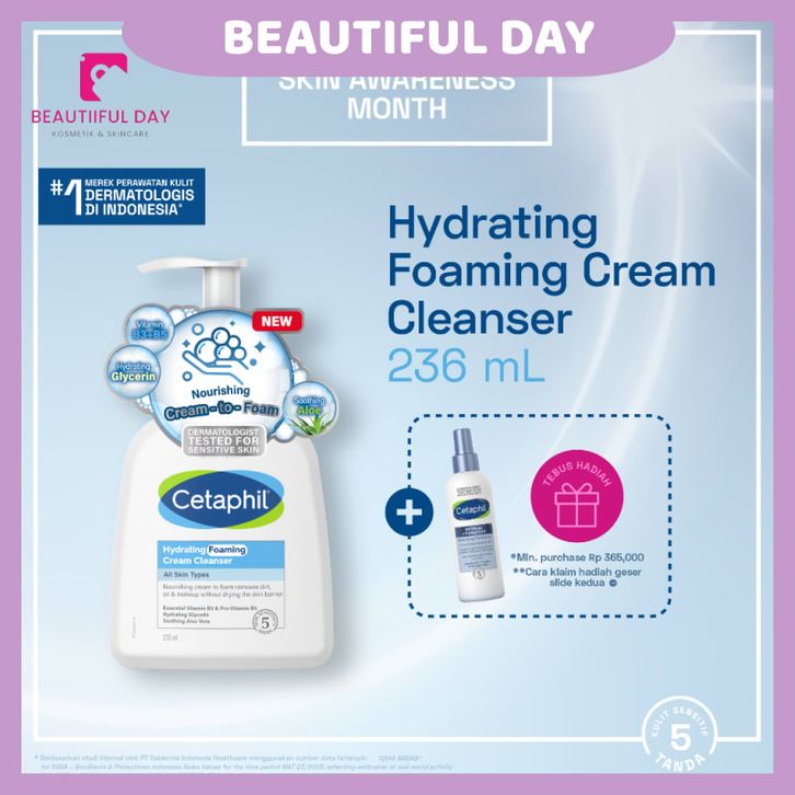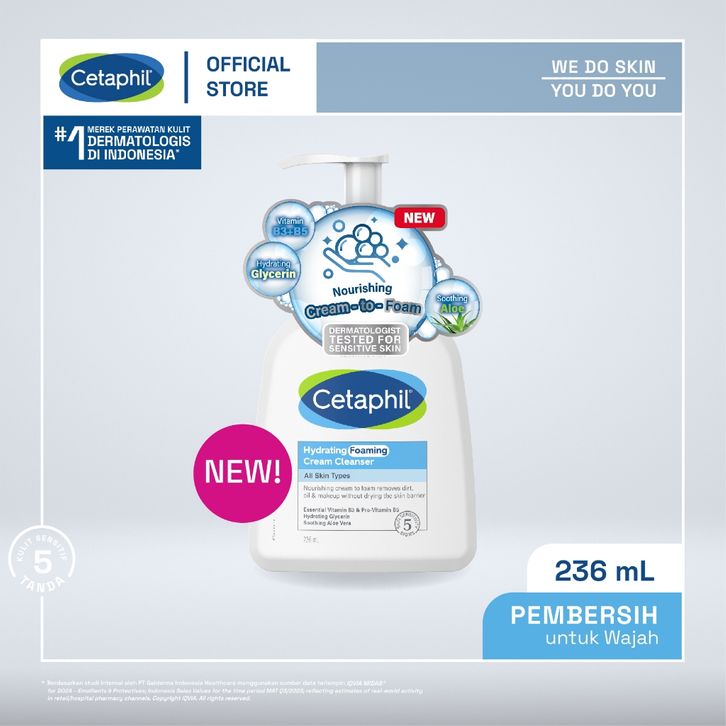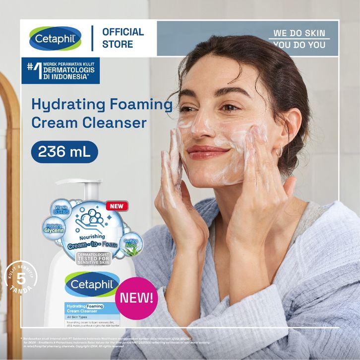 Cetaphil Hydrating Foaming Cream Cleanser 236ml dengan Soothing Aloevera, Vitamin B3 dan Pro Vit B5 untuk Segala Jenis