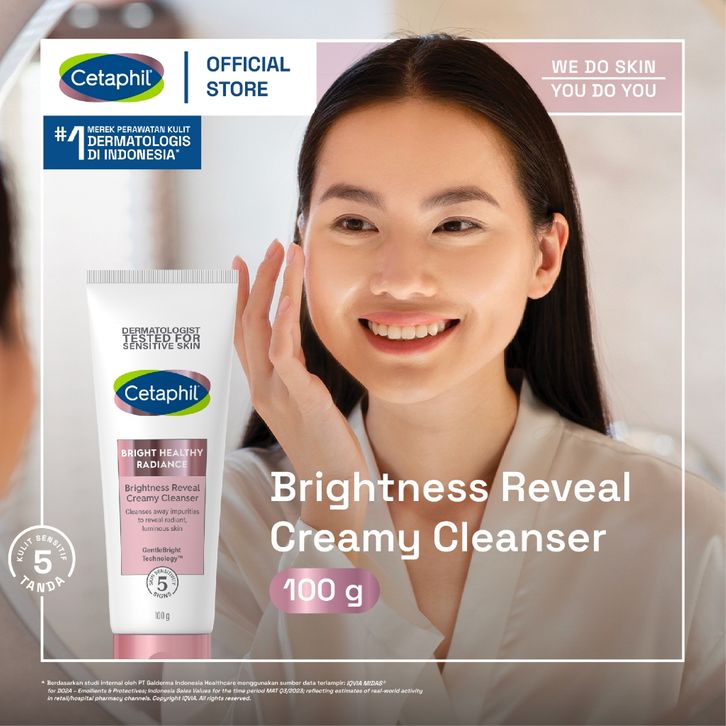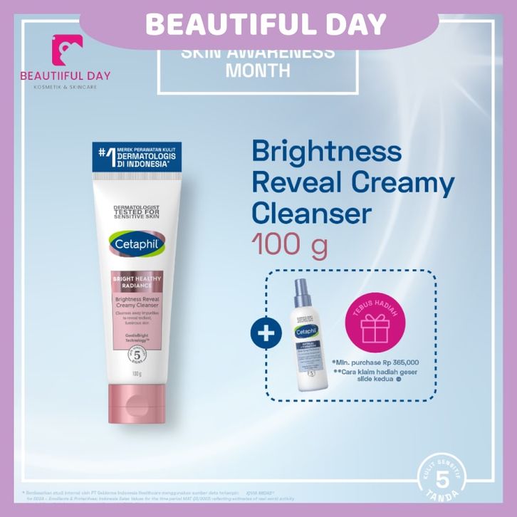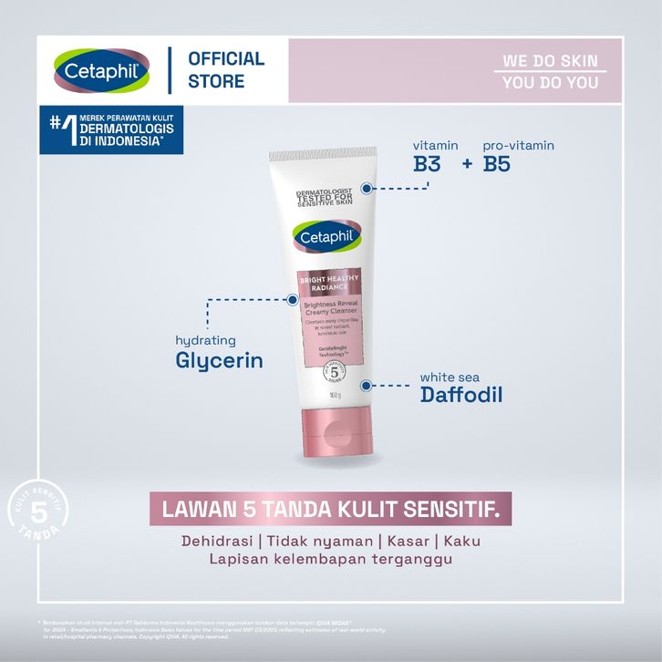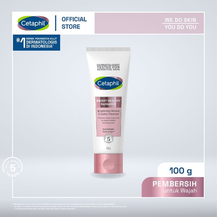 Cetaphil Bright Healthy Radiance Reveal Creamy Cleanser 100g dengan Glycerin, Niacinamide, dan White Sea Daffodil Skin