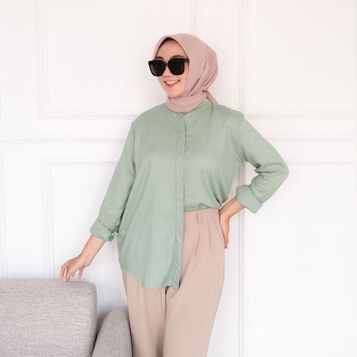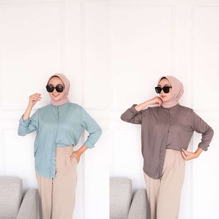 Kemeja Wanita Dewasa Atasan Blouse Perempuan Lengan Panjang Korean Fashion Style Kasual Kerja Kekinian Rayon Stylish