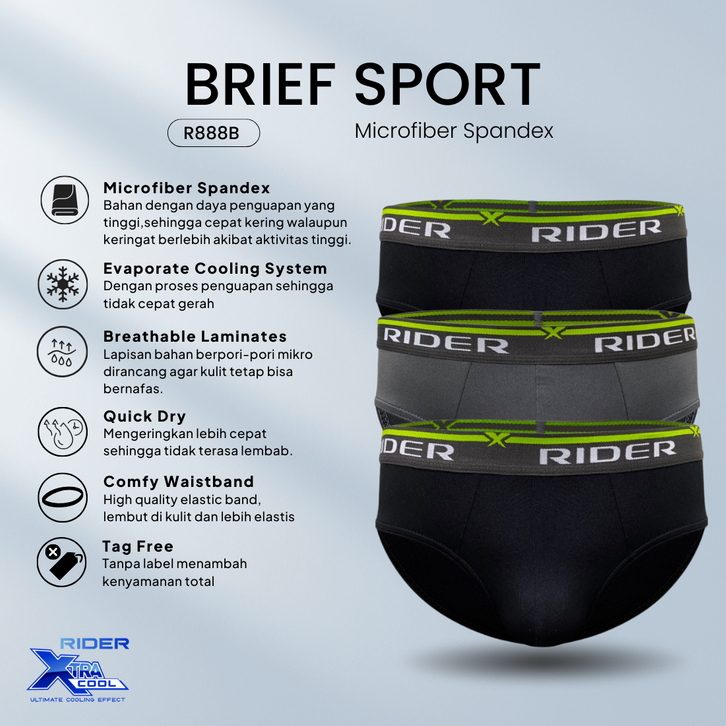 Rider Xtracool Microfiber Brief - Celana Dalam Pria R888B isi 3 Pcs