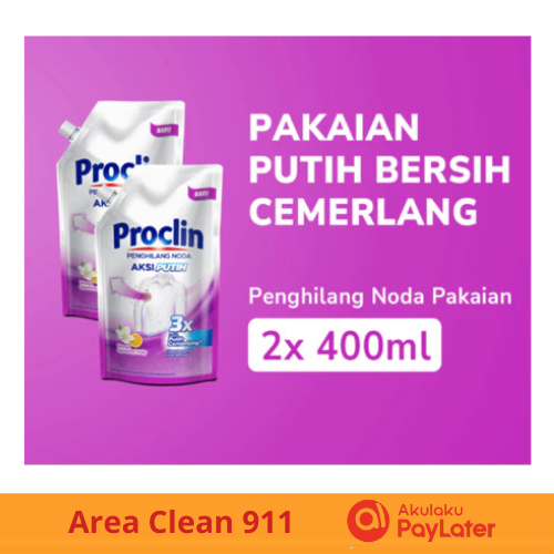 [ 2 Pouch ] Detergent Proclin Penghilang Noda & Aksi Putih Pakaian 400 ml x2