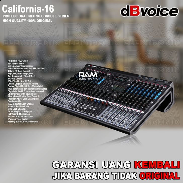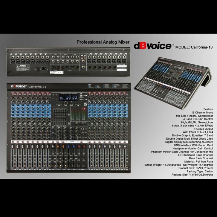 MIXER AUDIO 16 CHANNEL DB VOICE CALIFORNIA 16 ORIGINAL MIXING DB VOICE CALIFORNIA PROFESSIONAL BLUETOOTH USB