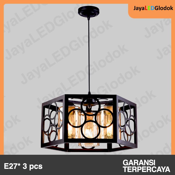 LAMPU GANTUNG MINIMALIS INDUSTRIAL RUANG TAMU MINI BAR CAFE RETRO VINTAGE MODERN HITAM