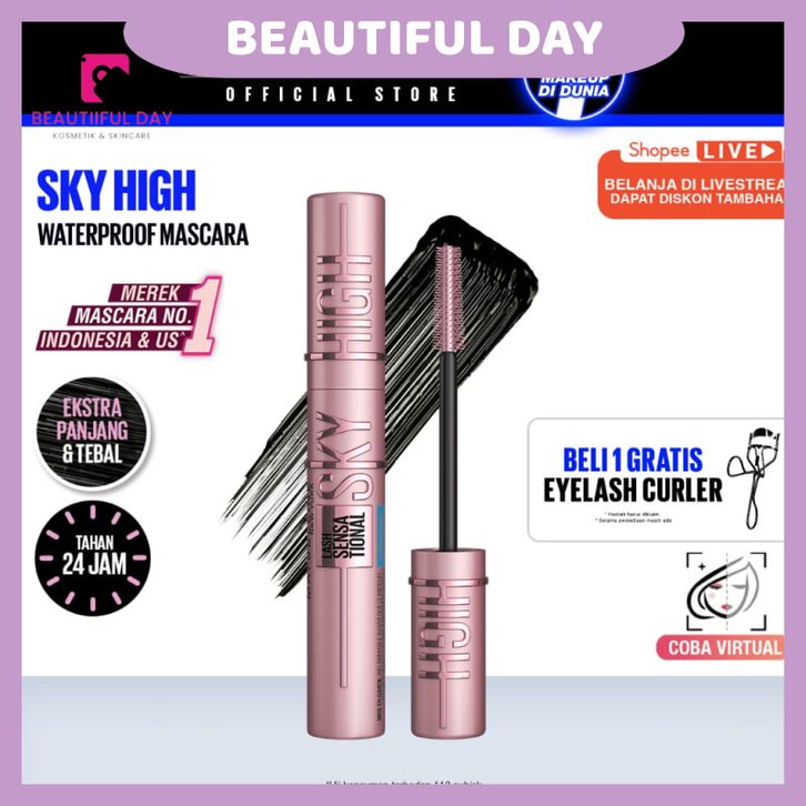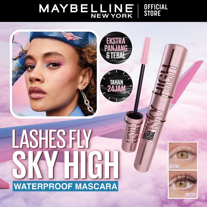 Maybelline Sky High Waterproof Mascara 6ml - Maskara Eye Make up Black Bulu Mata Panjang Tebal Tahan 24 Jam Volumizing