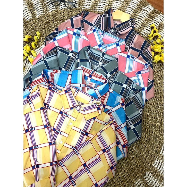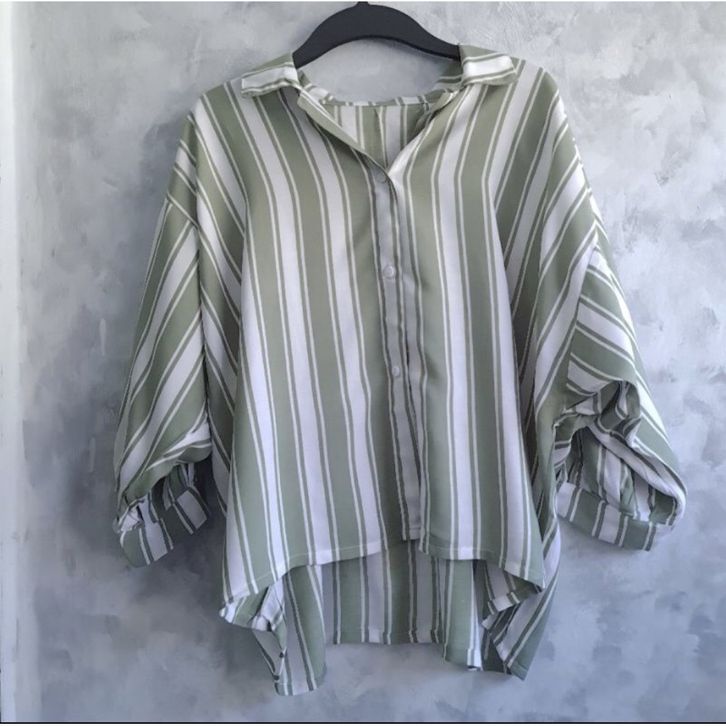 Kemeja Wanita Dewasa Motif Salur Oversize Shirt Lengan Balon Atasan Cewe Basic Casual Bahan Katun Stylish