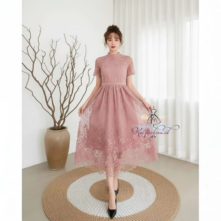 Dress Annabelle Natalan Pakaian Wanita Simple Elegant Dress Party Tille Mutiara Cantik Mewah Dress Wanita Kekinian