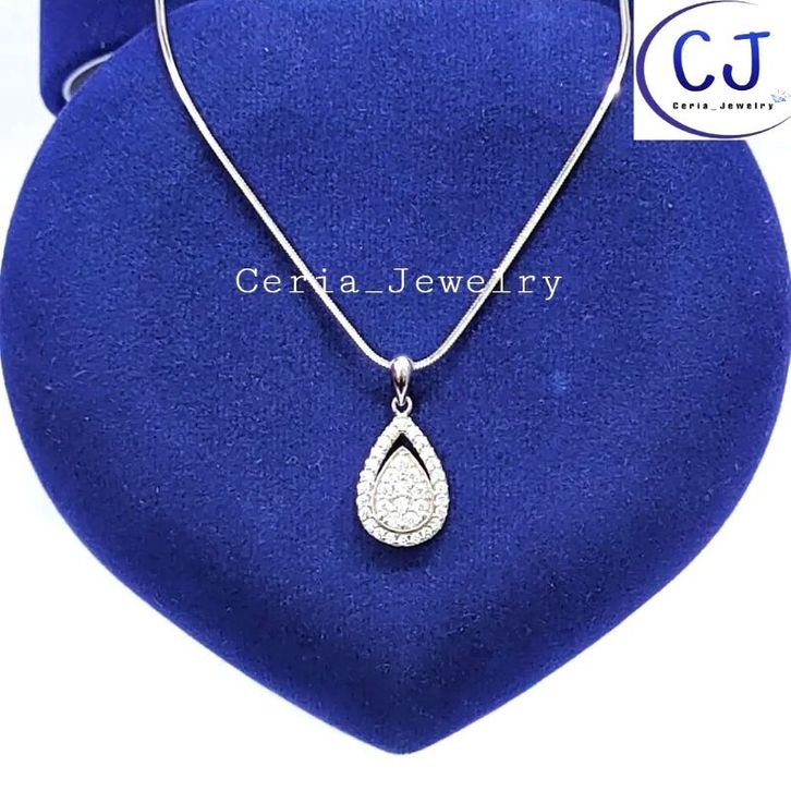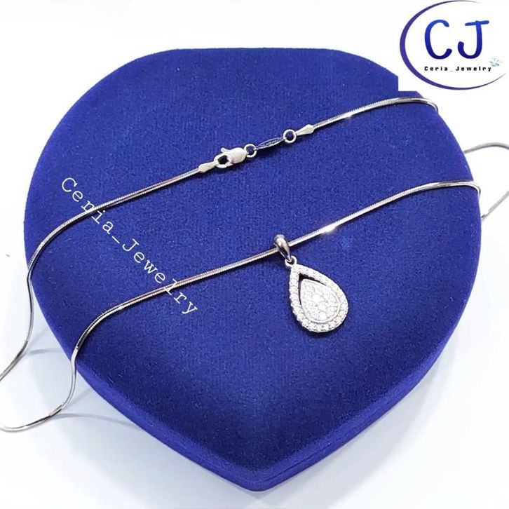 Kalungg Perak Asli Silver 925 Lapis Emass Putih Dengan Lontin Oval - Perhiasan Wanita