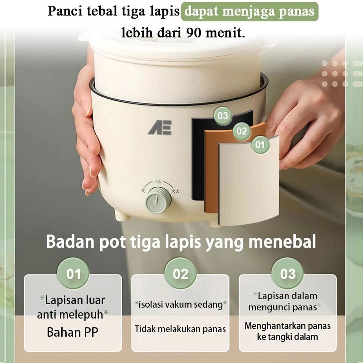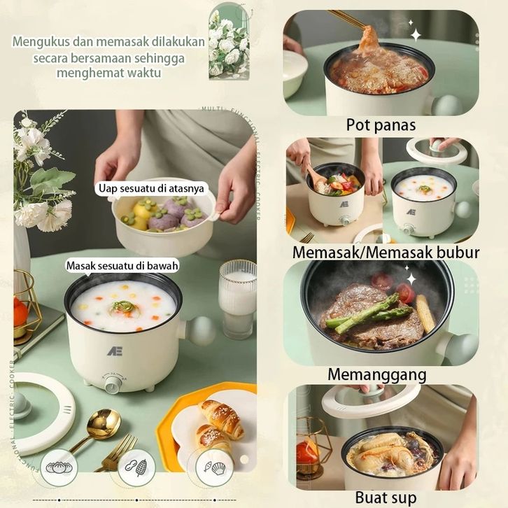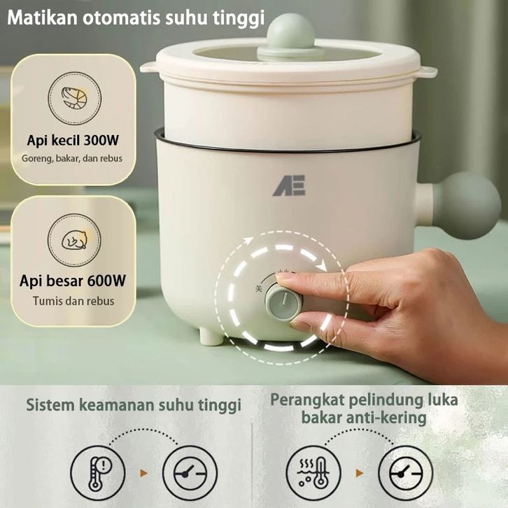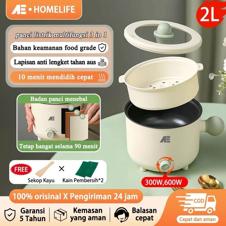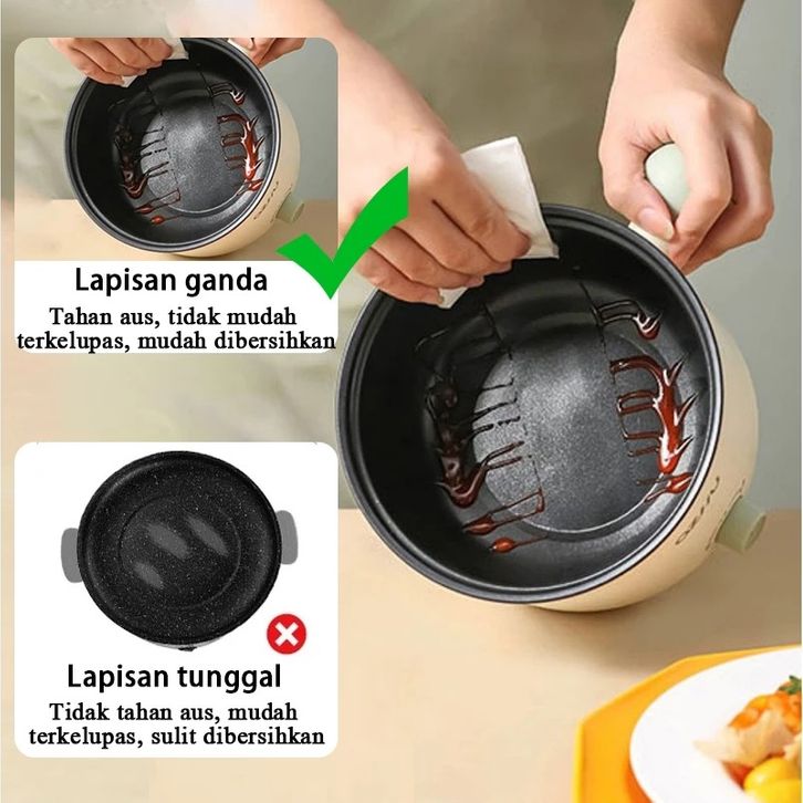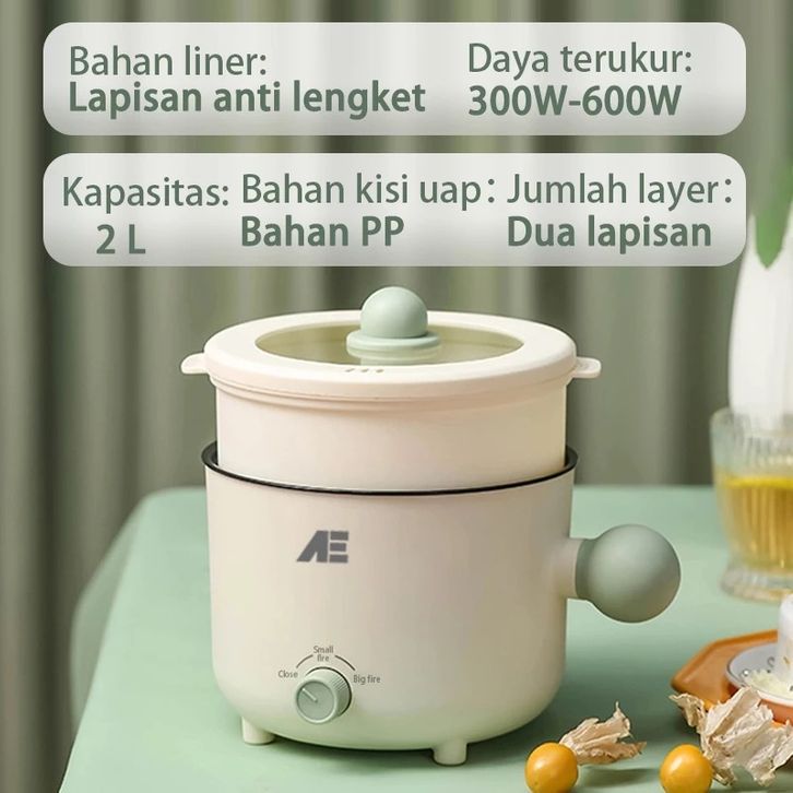 Panci Listrik 2 Liter Serbaguna Panci Electric Cooker Anti Lengket Panci Listrik 3in1 Kukusan Listrik
