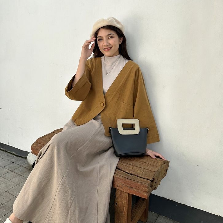 Outer Blazer Wanita Dewasa Atasan Luaran Lengan Panjang Fashion Korean Style Bahan Linen Premium Tinggi Stylish Trend