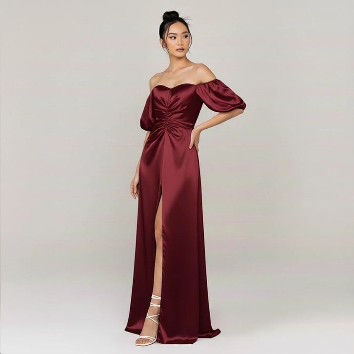 Sabrina Dress Satin Wanita Dress Bridesmaid Dress Wanita Kekinian 2025 Dress Korean Style Baju Dress Natal