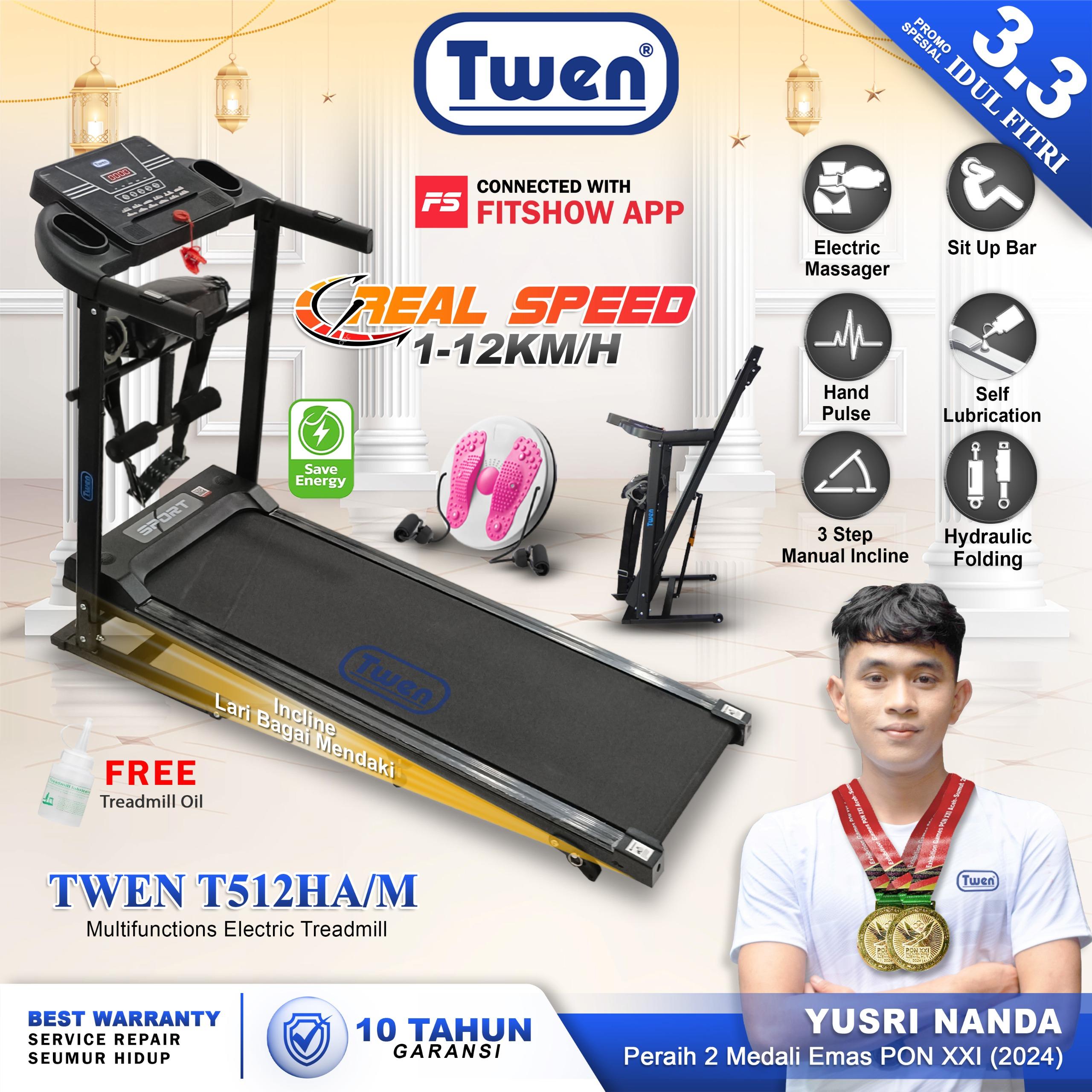 Alat Fitness Treadmill Listrik MultiFungsi Twen T512HA T512HA+M Black