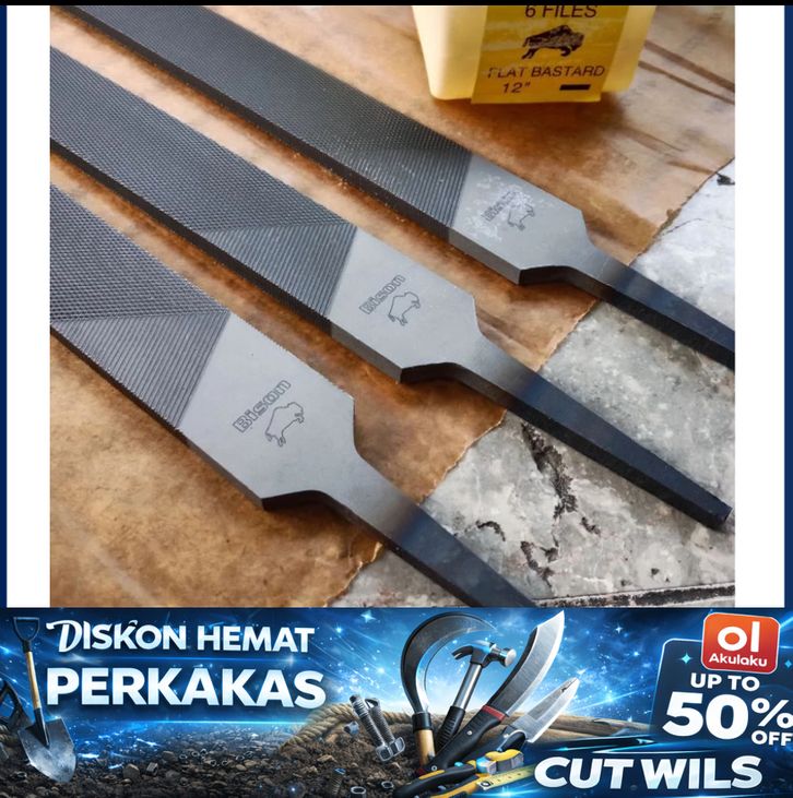 kikir BISON 12" NEW ORIGINAL, kikir besi flat, kikir patar, kikir gepeng harga satuan
