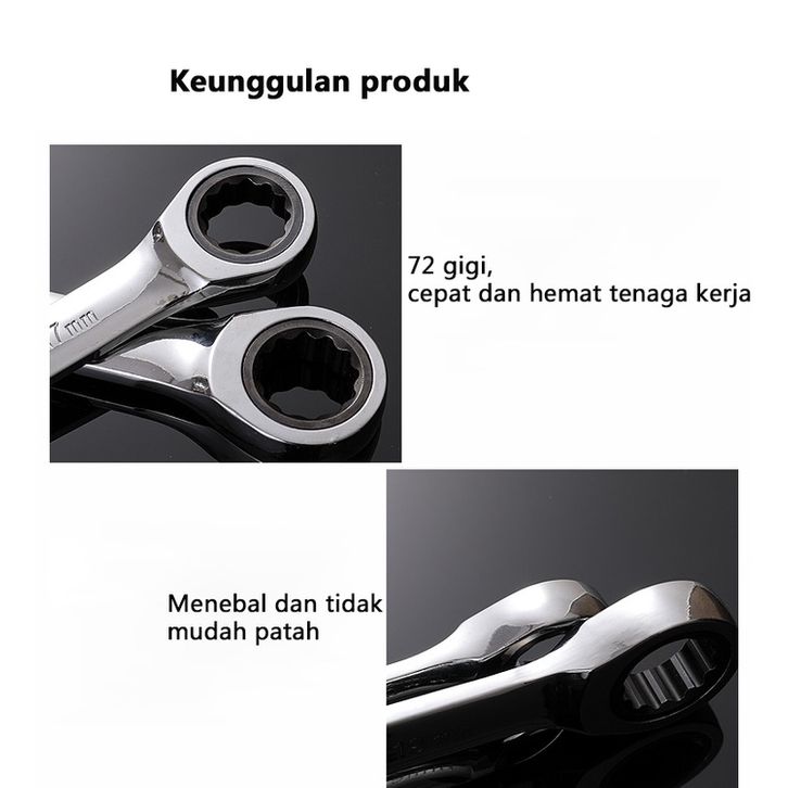 Termurah Kunci Ring Pas Rachet Set 6-22mm Kombinasi Kunci Ratchet Set Kunci Ring Spanner Kombinasi Wrench