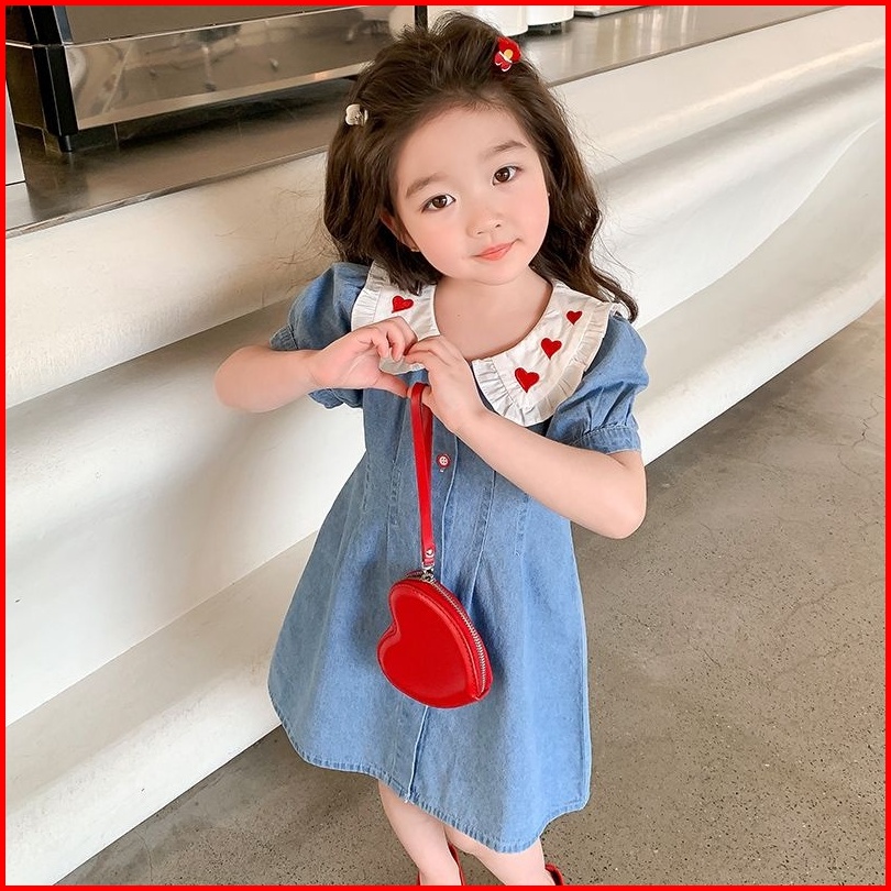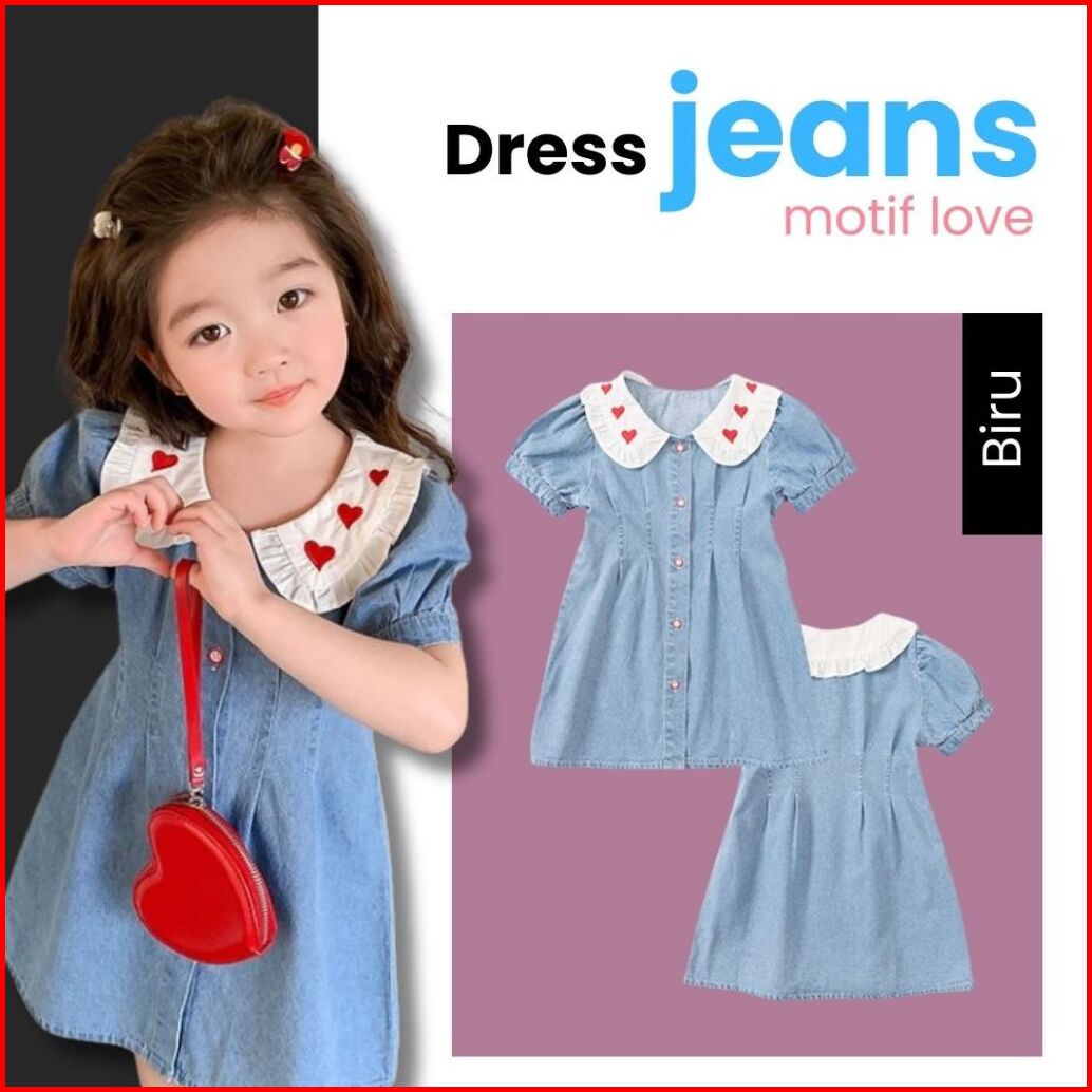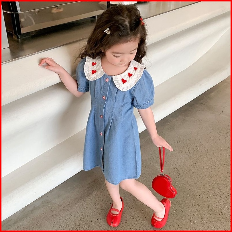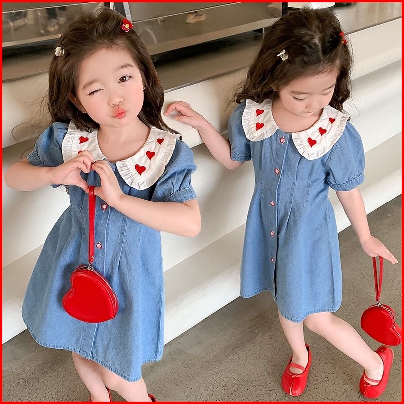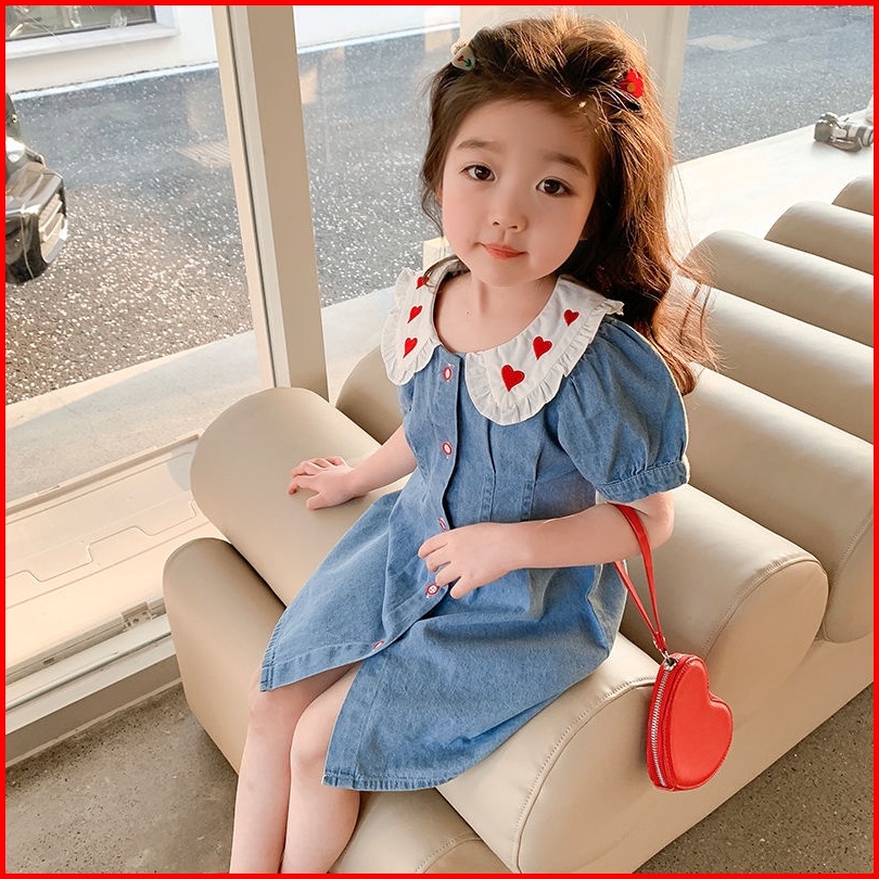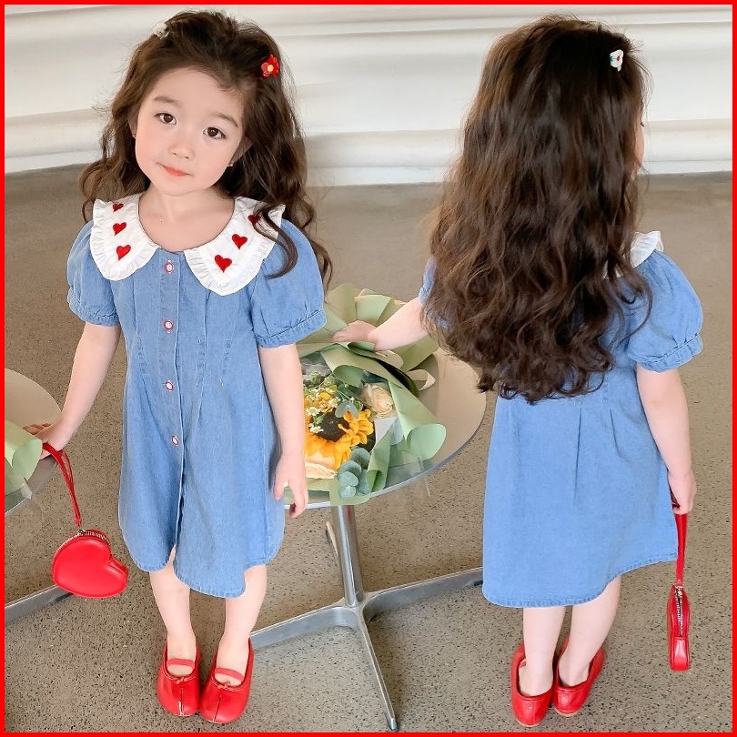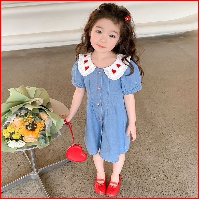 Princesscoco 1-10 Tahun Dress Anak Perempuan Jeans Bordir Baju Denim Cewek Nyaman Dipakai Lembut