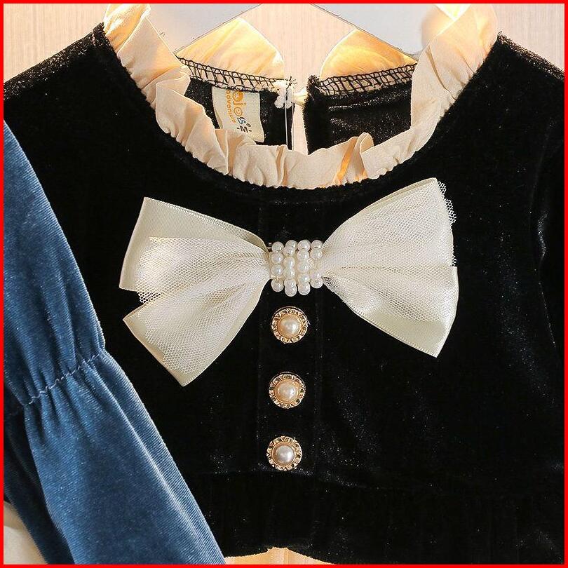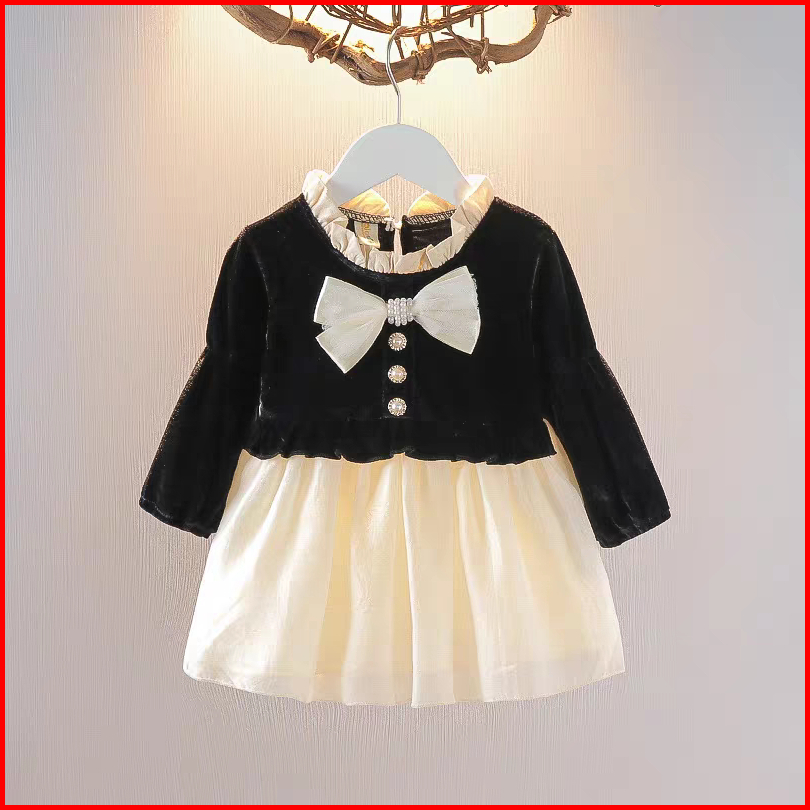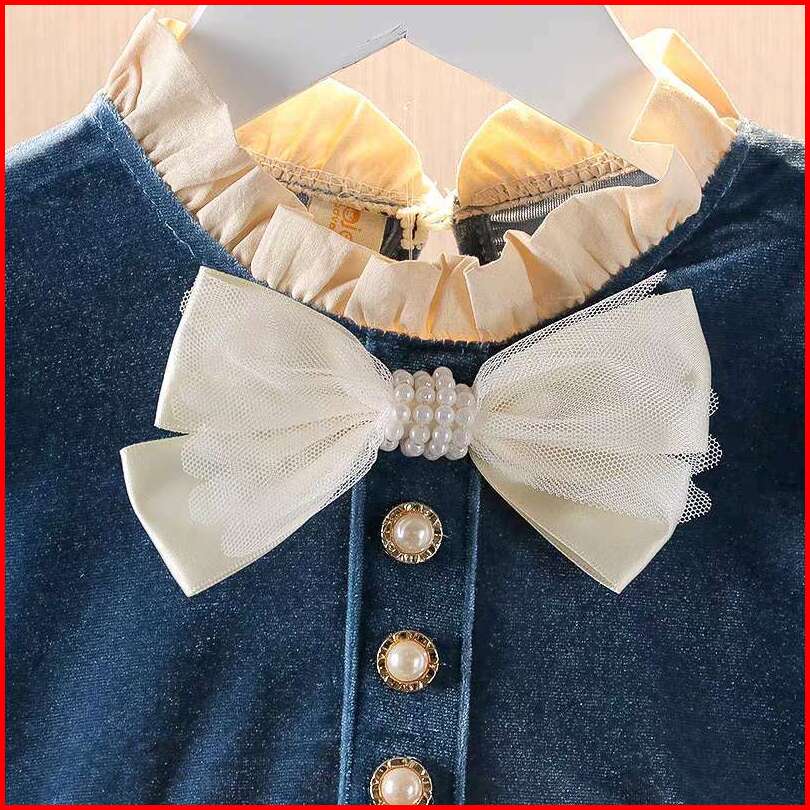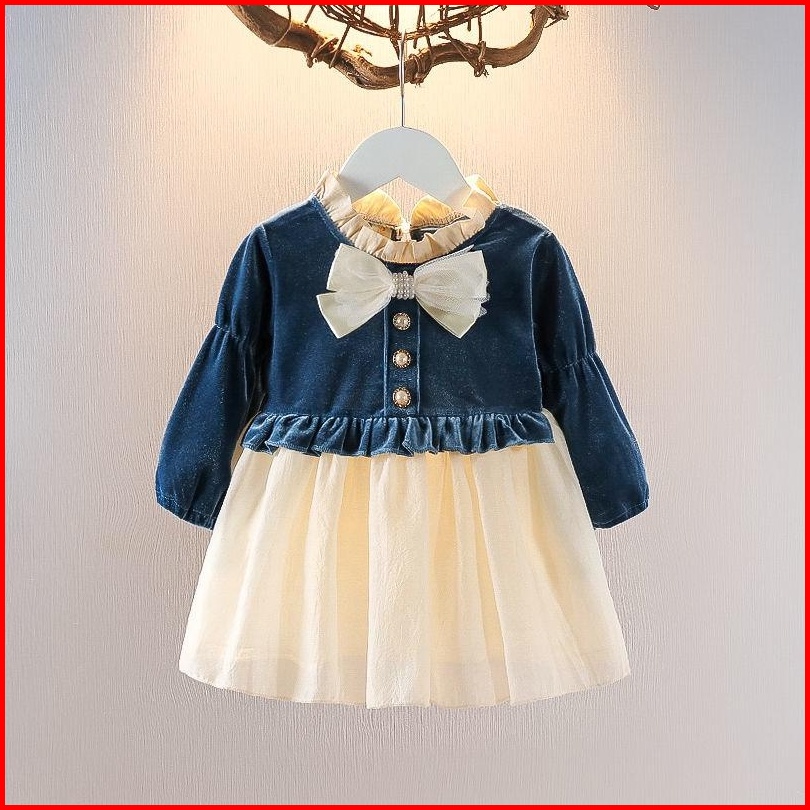 Kf Cat Dress Anak Perempuan Lengan Panjang Bahan Legacy Bright Pita Korean Style Usia 1-4 Tahun