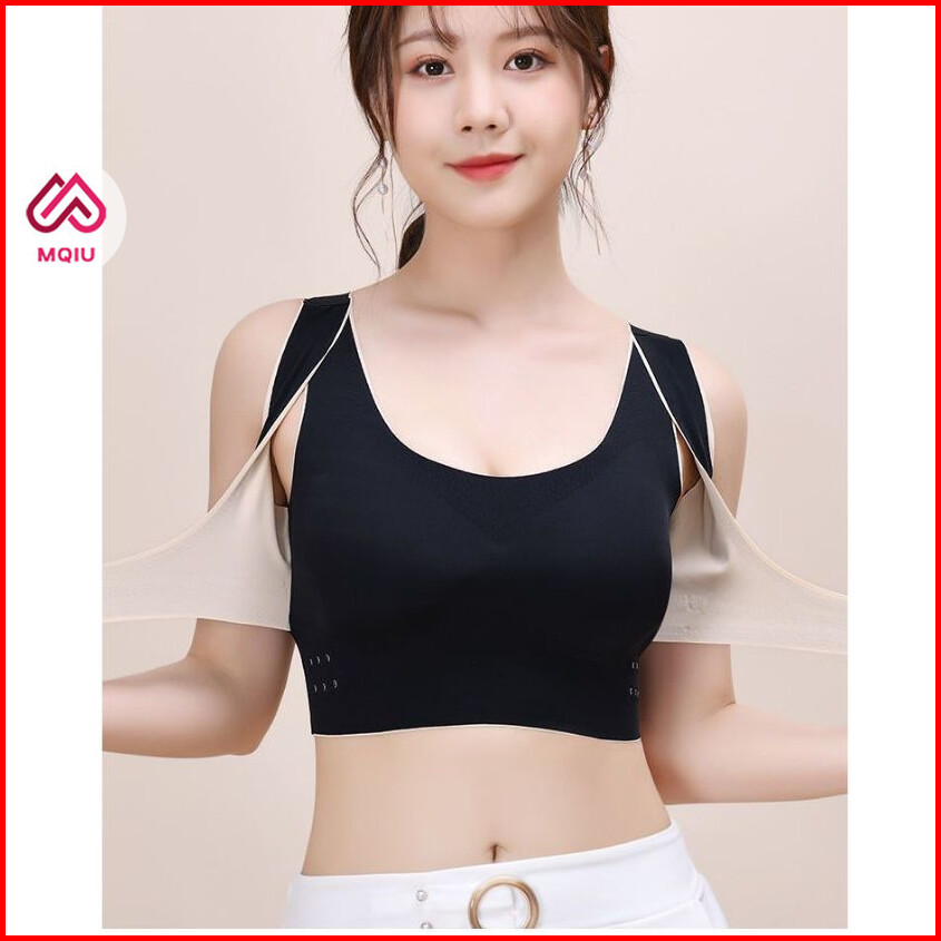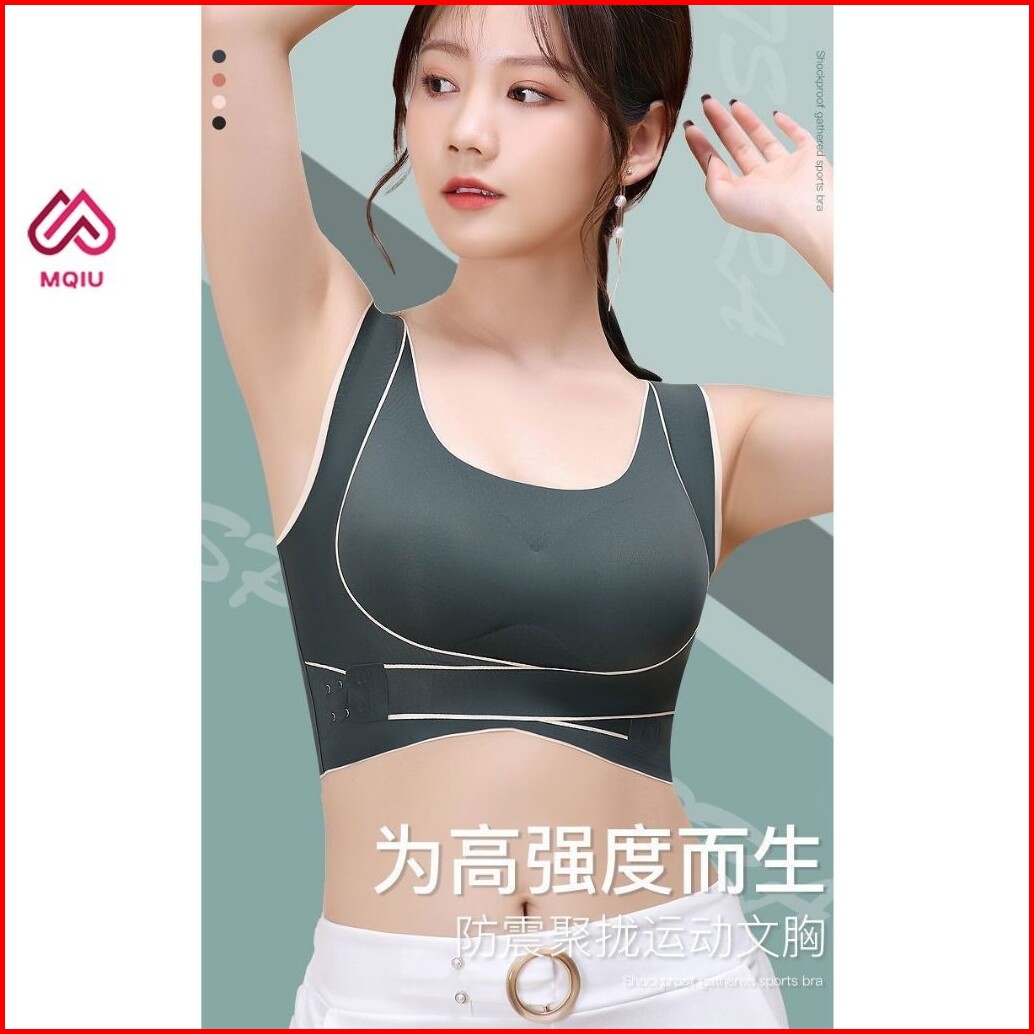 Mqiu - Bh Push Up Bra Seamless Wanita Sport Tanpa Kawat Tanpa Pengait Punggung Tali Silang Bh Olahraga Yoga Jogging