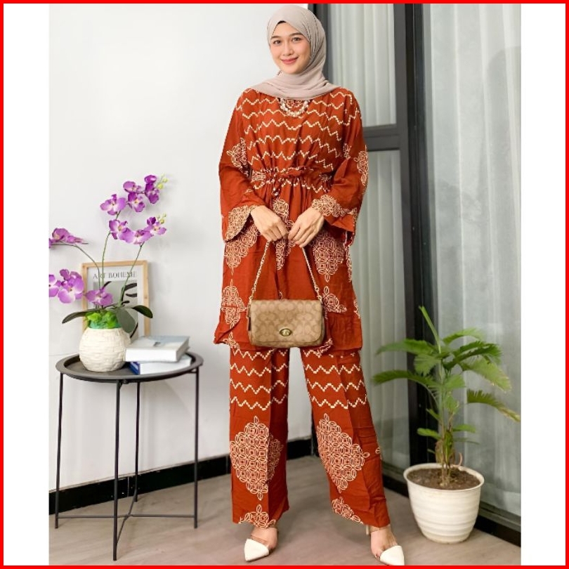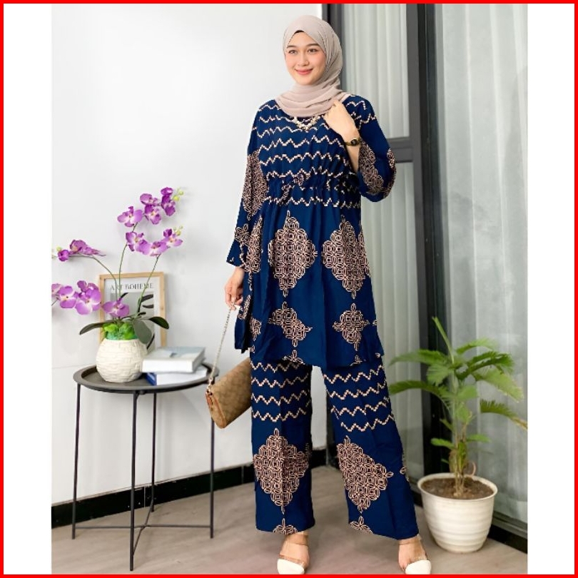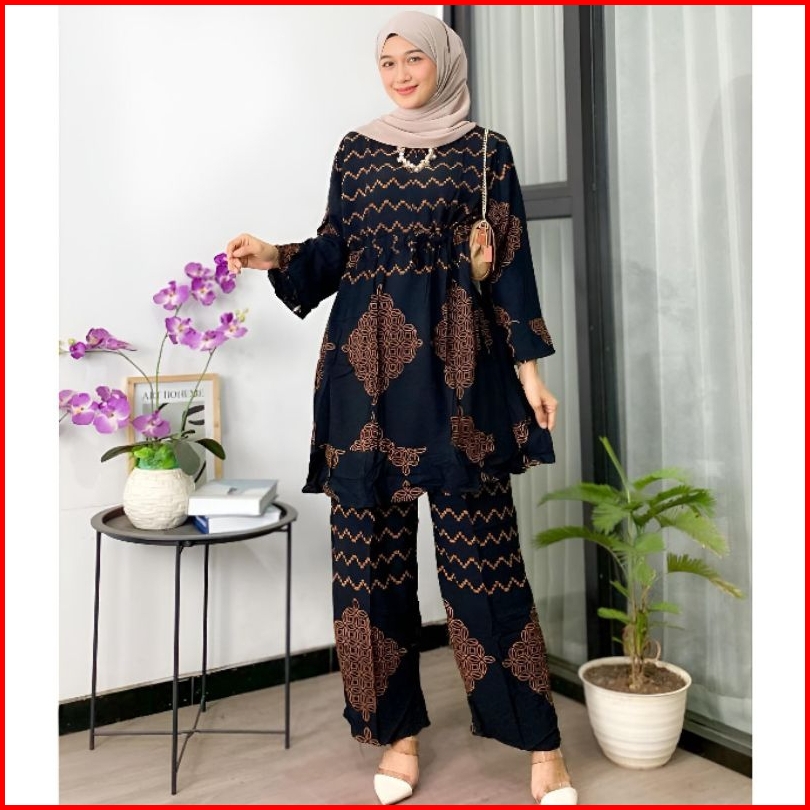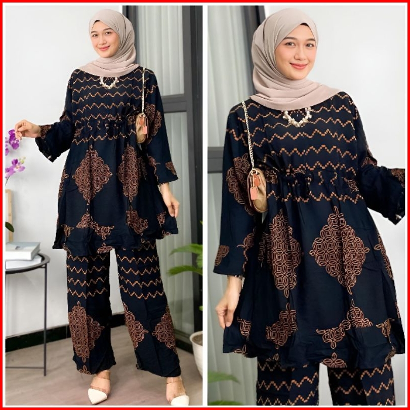 Setelan Wanita Tiedye One Set Wanita Kekinian Rayon Ld 120 Motif Batik Busui Lengan Panjang Tali Serut