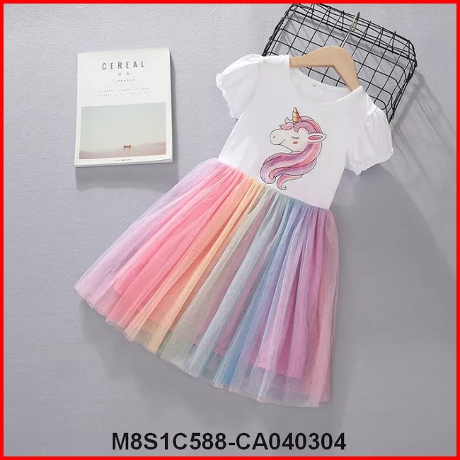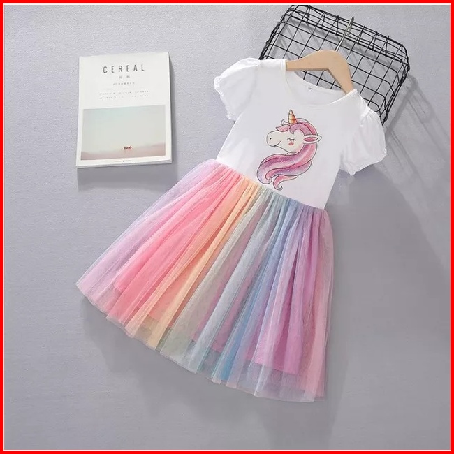 Gaun Anak Kuda Poni Dress Pelangi Dress Tutu Anak Motif Unicorn Costum Anak Lucu