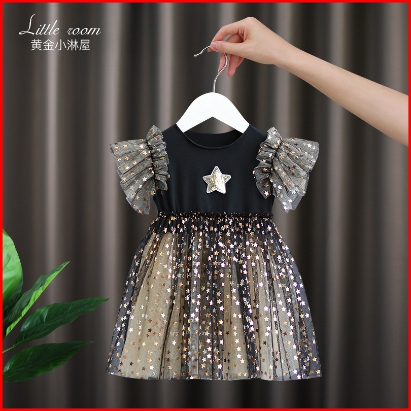 Sale 6.6 Mineboo - Dress Merrystar Black Mamba Star Anak Perempuan Rok Gradasi Hitam Bahan Tile Halus Gaun Manis Rok Ana