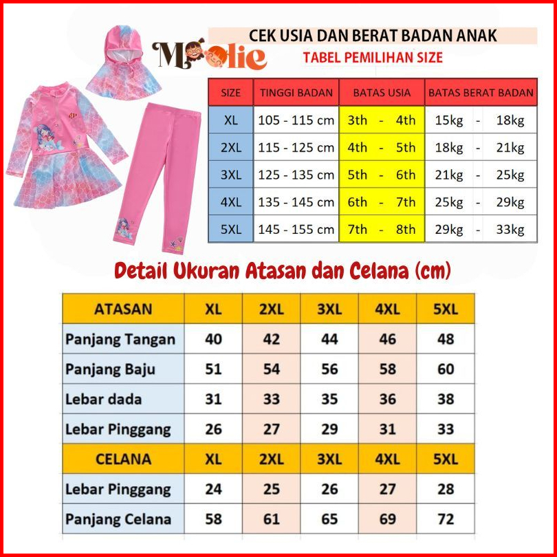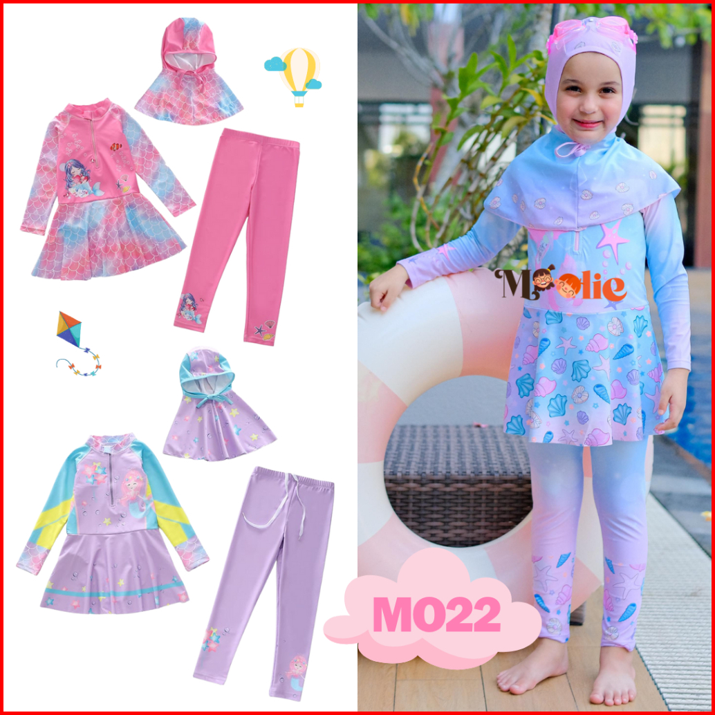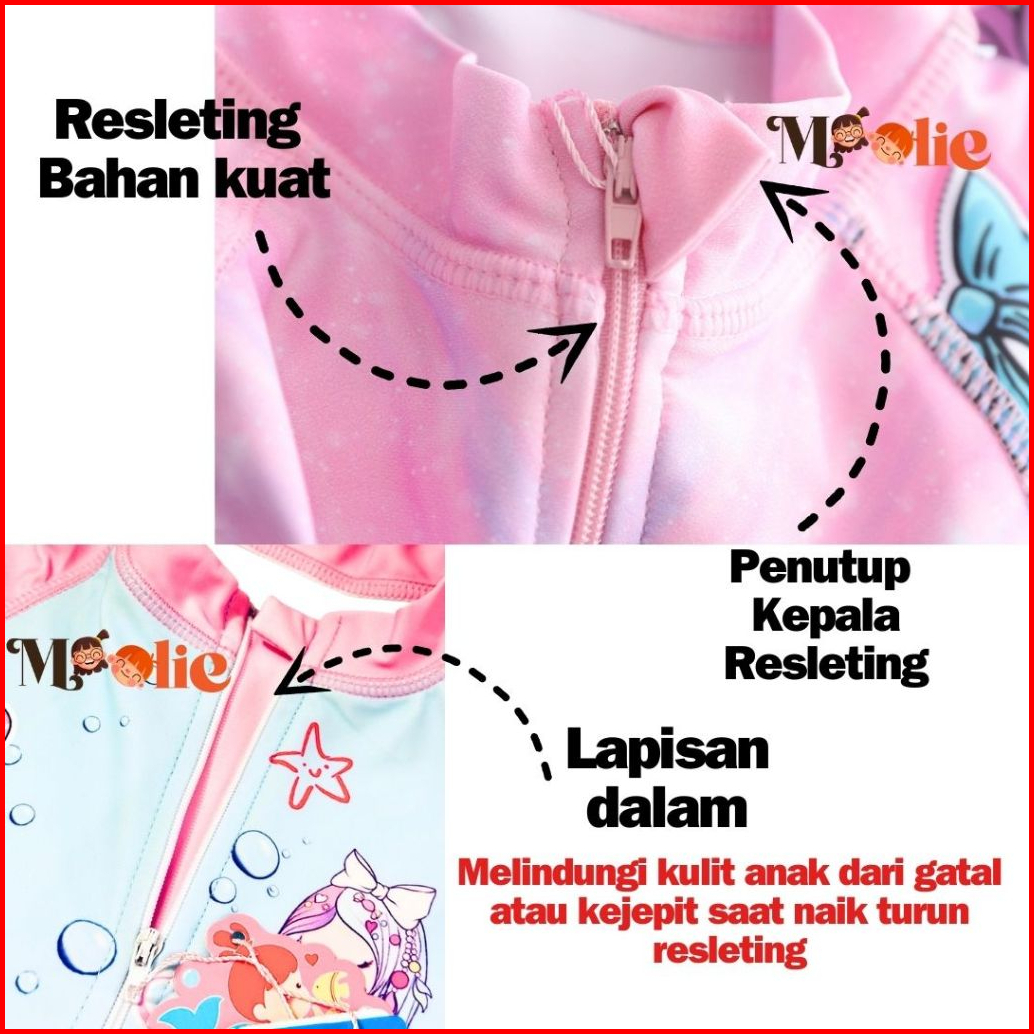 Mo22 Moolie Baju Renang Swimsuit Anak Perempuan Hijab Resleting
