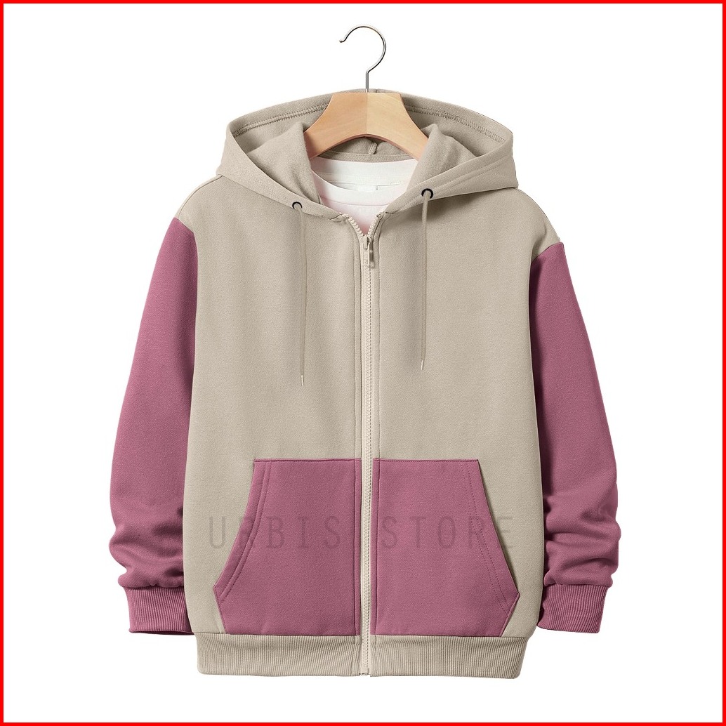 Jaket Zipper Polos Anak Laki-laki Perempuan Usia 3-13 Tahun Kombinasi Bahan Fleece Tebal Urbis